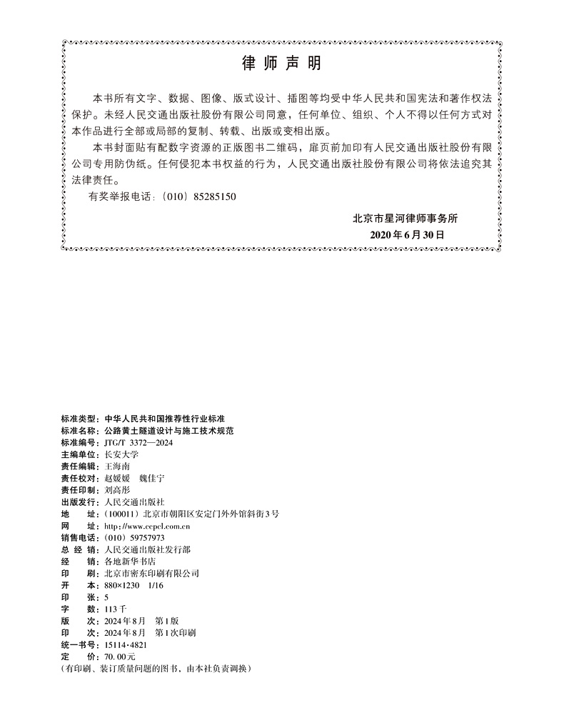 JTG/T 3372-2024 公路黄土隧道设计与施工技术规范 人民交通出版社旗舰店