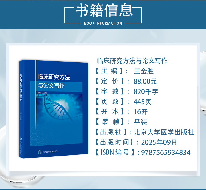 临床研究方法与论文写作 王金胜 医学统计学概述 定量资料常用统计分析方法 临床流行病学概述 9787565934834 北京大学医学出版社