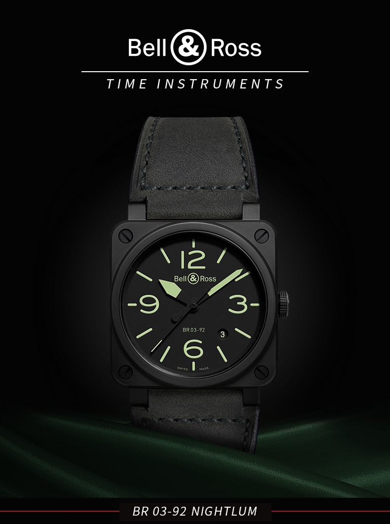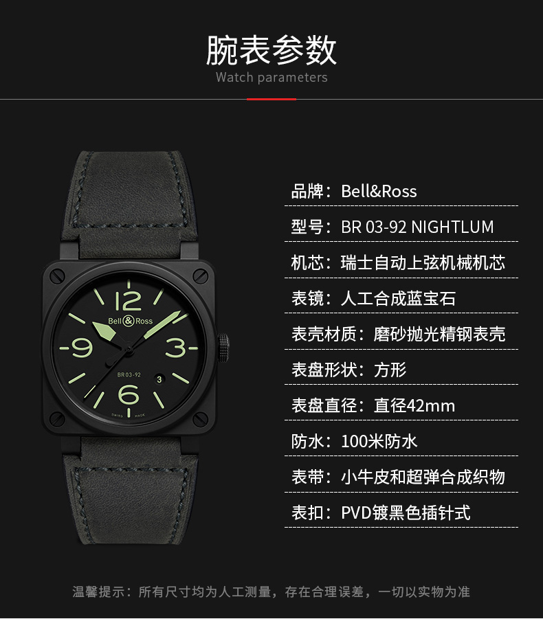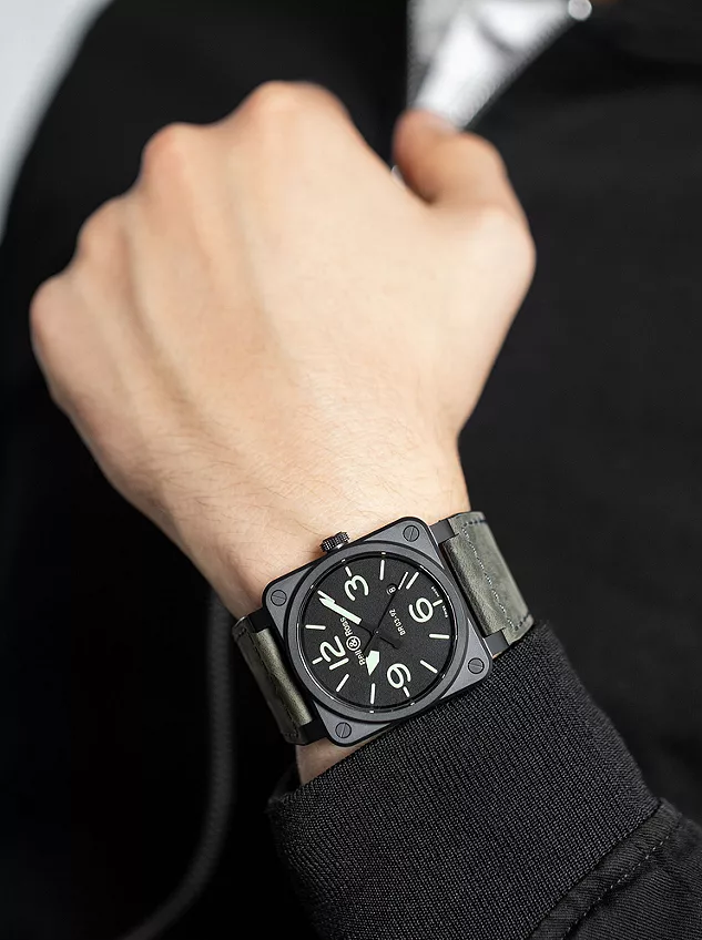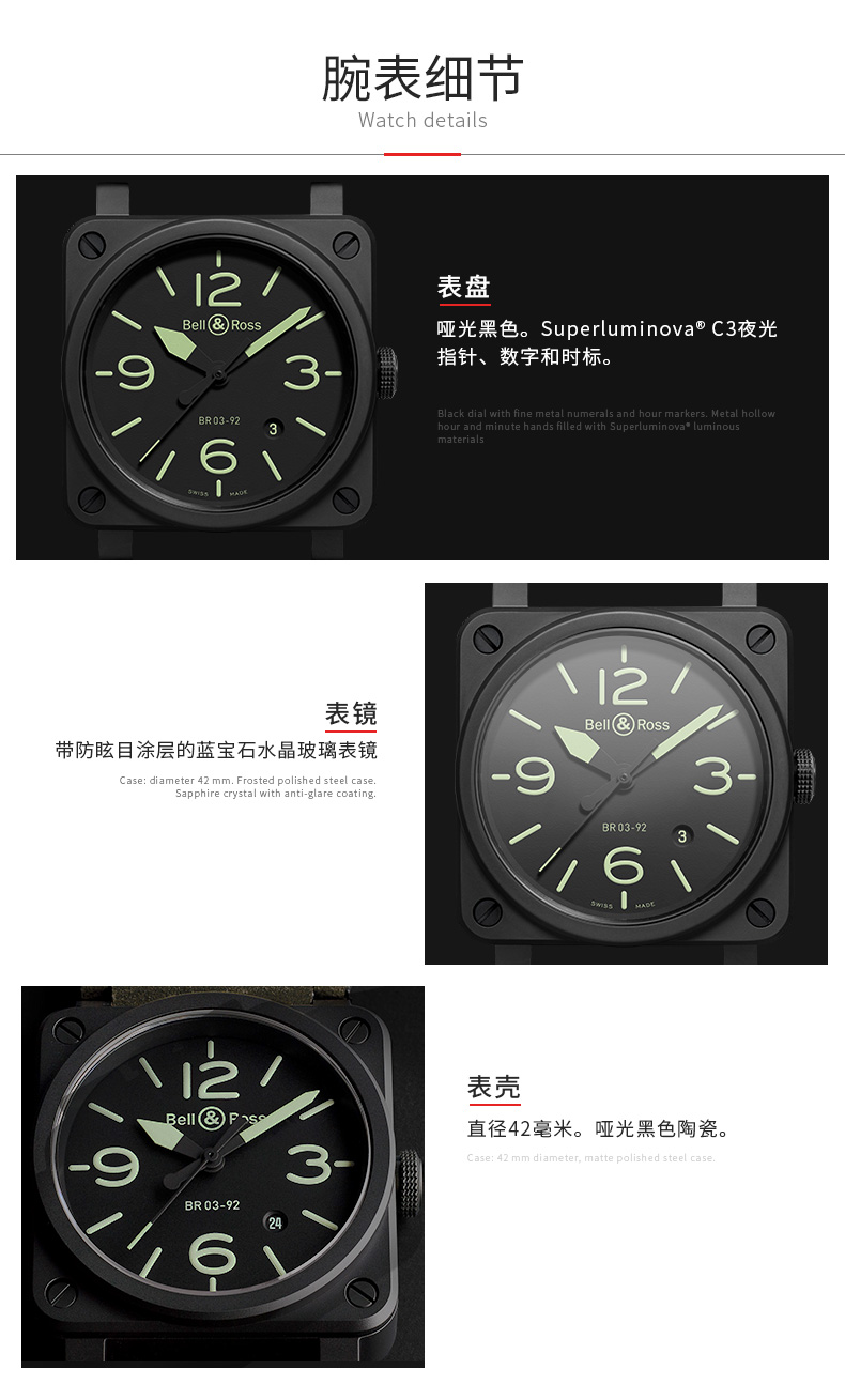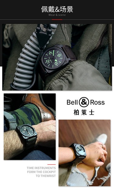 Bell & Ross 柏莱士瑞士经典方表飞行腕表全自动机械男士手表 BR0392-BL3-CE/SCA