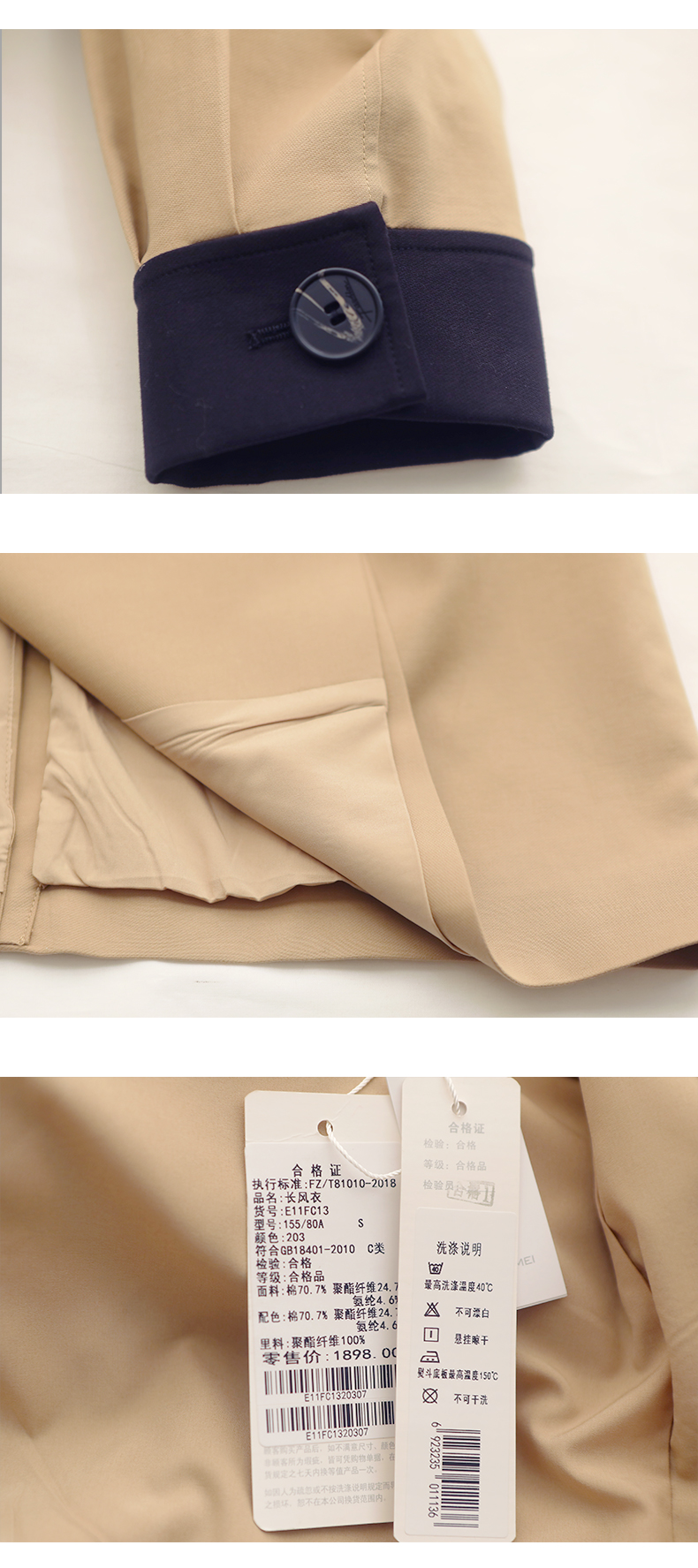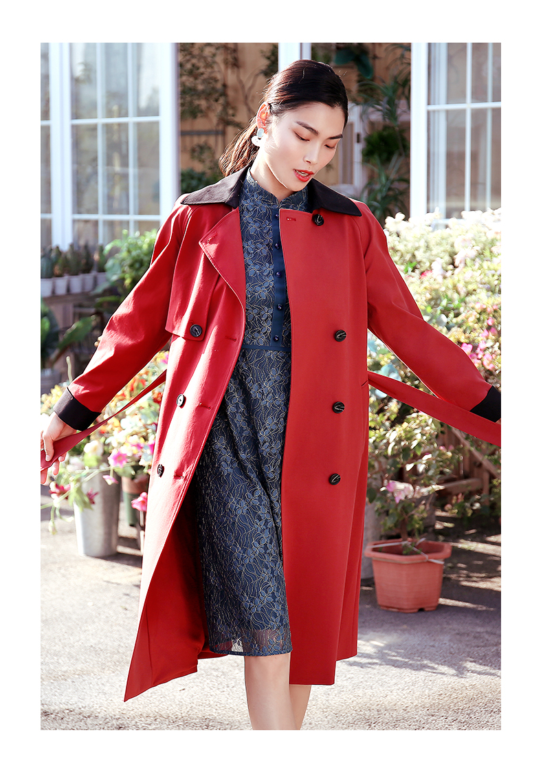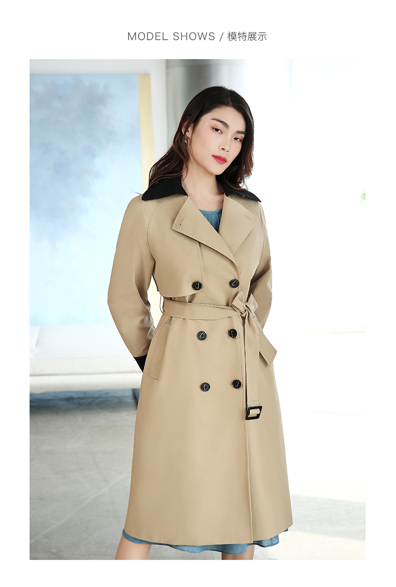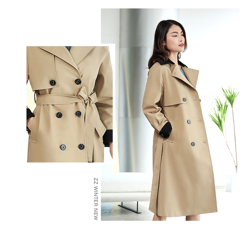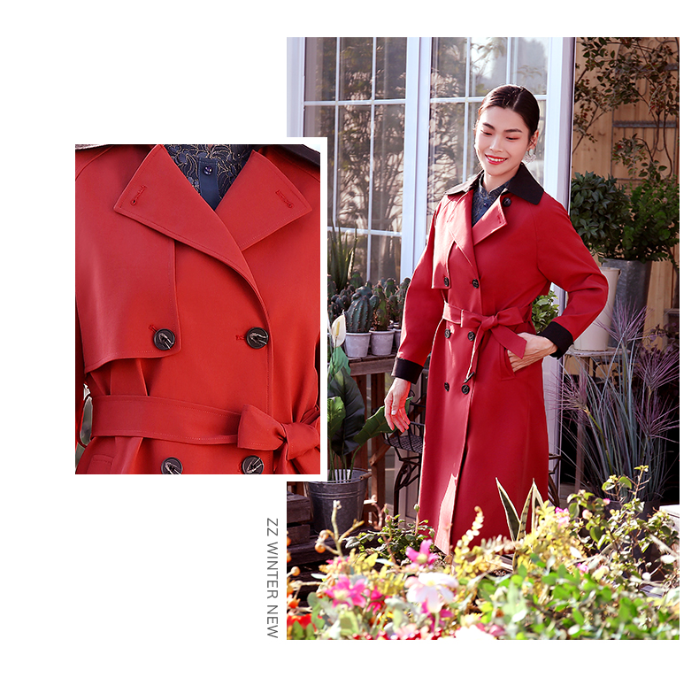 佐尔美春新款气质中长款经典束腰双排扣英伦新疆棉风衣E11FC13