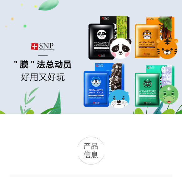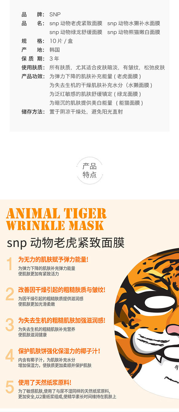 【爆款超低价预售 急单慎拍】SNP韩国进口动物面膜10片老虎熊猫组合补水保湿嫩肤萌宠面膜正品