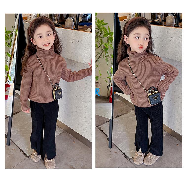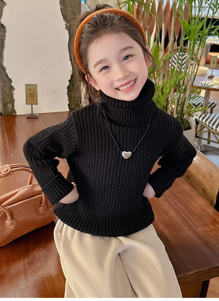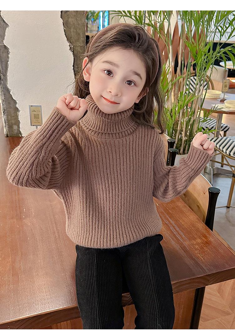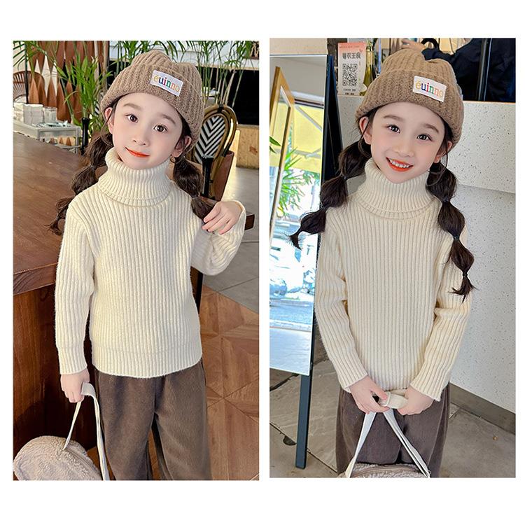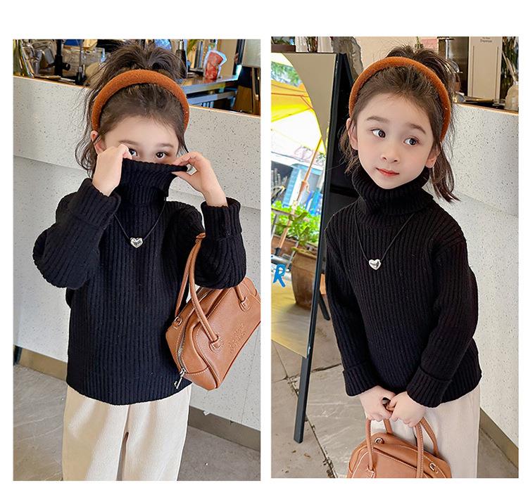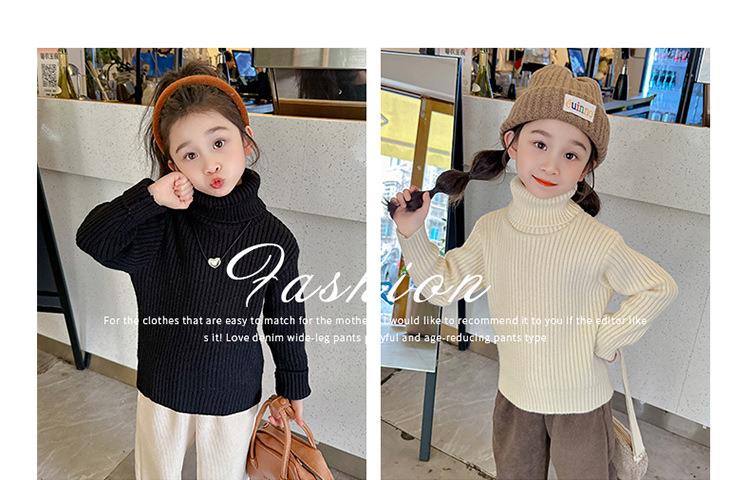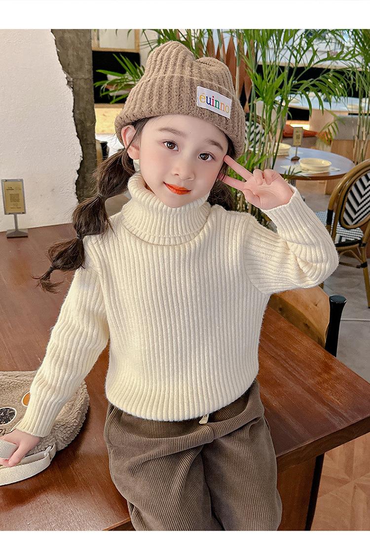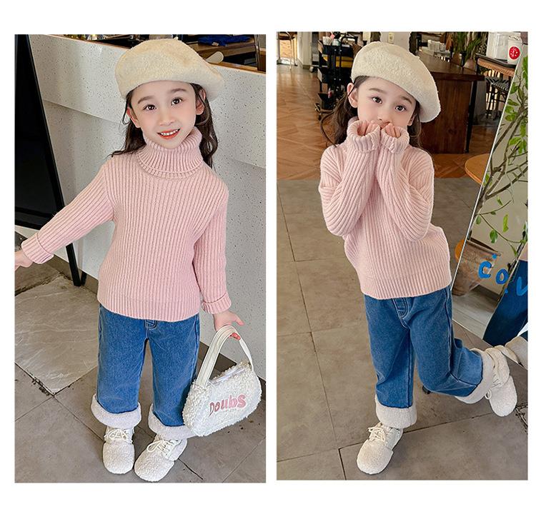 女童高领一体绒毛衣冬季2023新款宝宝韩版洋气打底衣童装