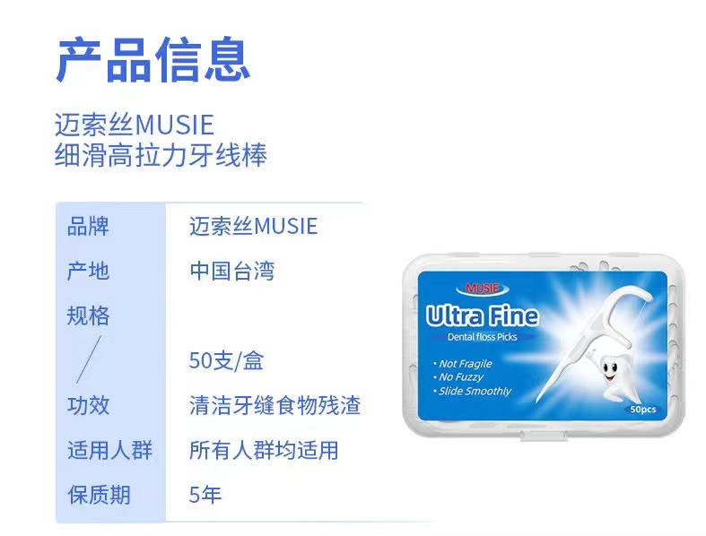【中欧班列精选】台湾迈索丝细滑双线牙线棒 原装进口细滑牙线棒强拉力丝滑牙签清洁牙缝去除牙垢便携牙线棒 50支/盒