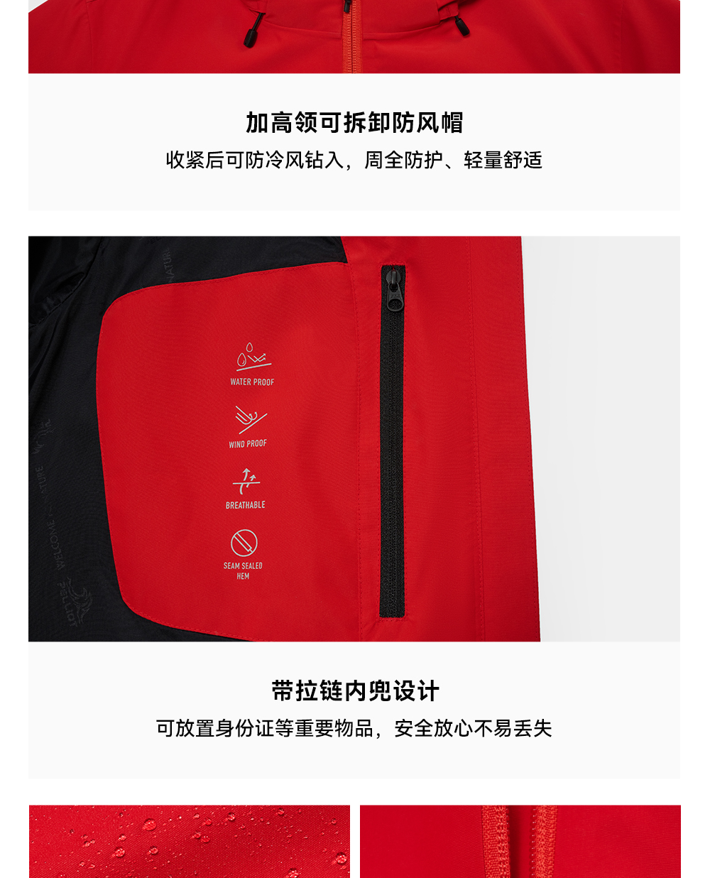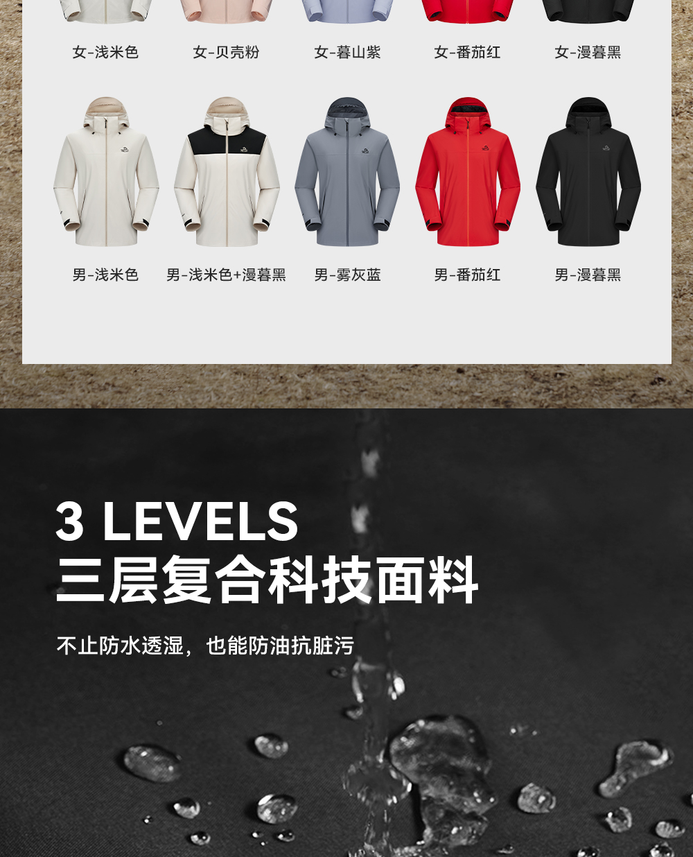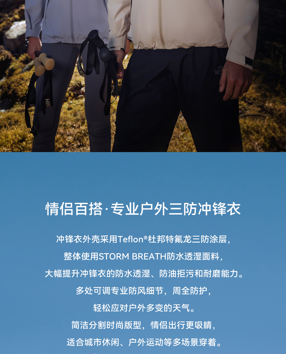 伯希和户外三防冲锋衣情侣款2025新款Teflon科技防风徒步登山外套