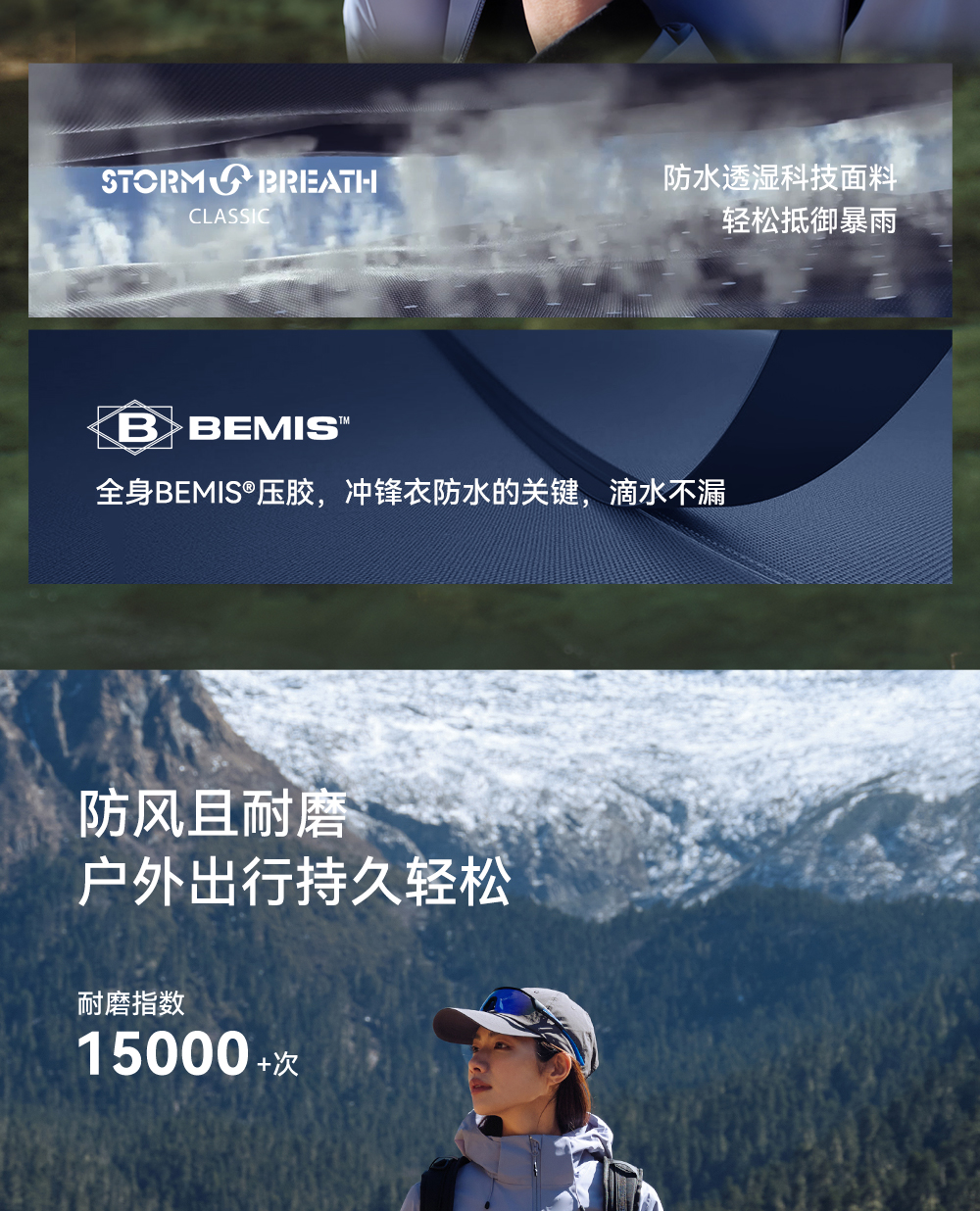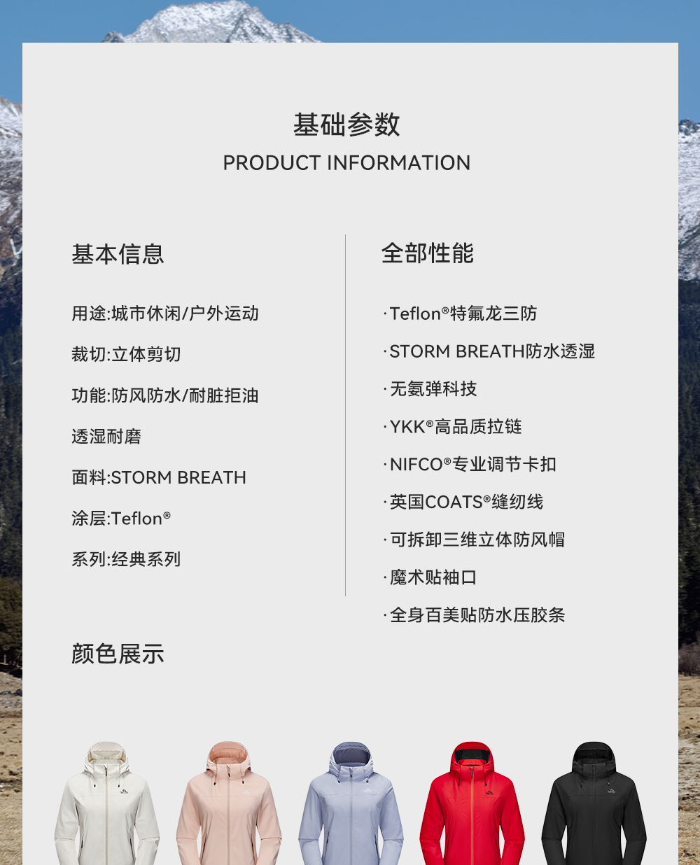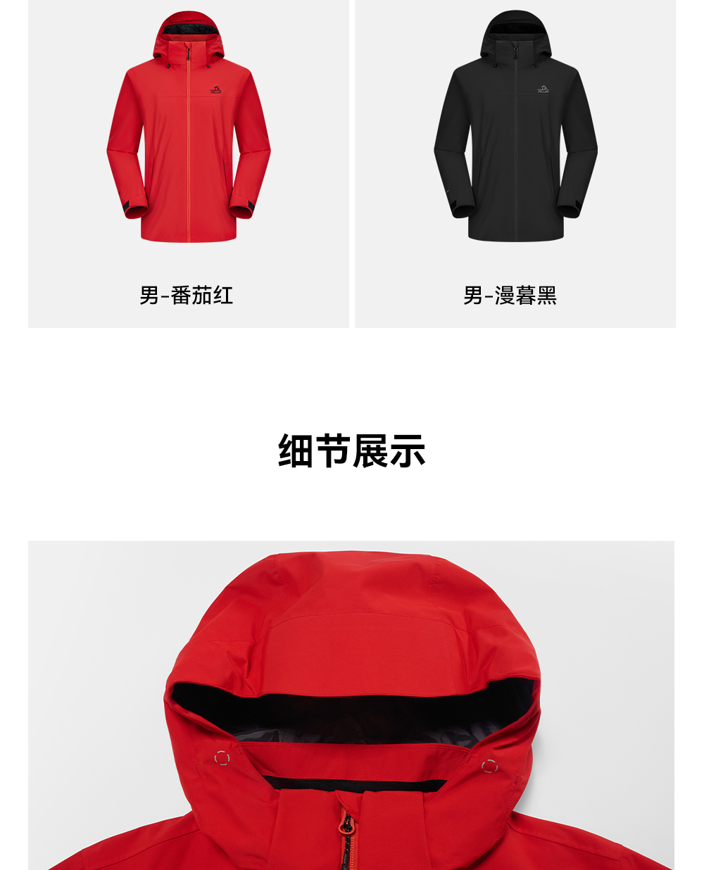 伯希和户外三防冲锋衣情侣款2025新款Teflon科技防风徒步登山外套