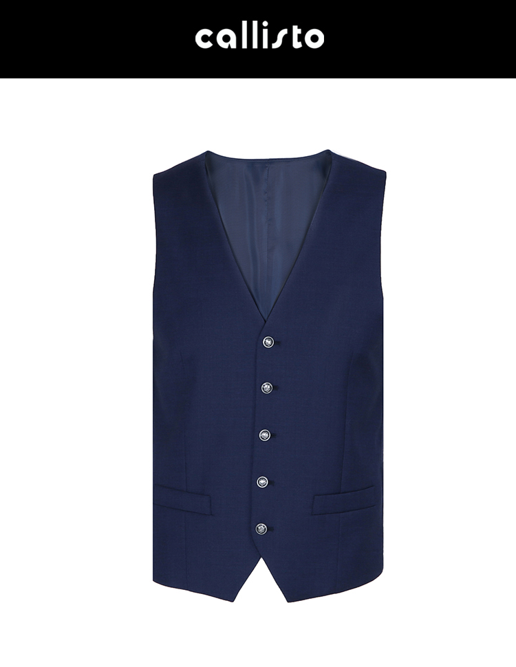 callisto藏蓝全羊毛珐琅扣马夹 FRBWV051C
