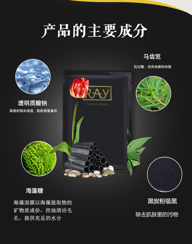 芮一泰国RAY官方黑金面膜清洁补水保湿收缩毛孔提亮肤色蚕丝面膜