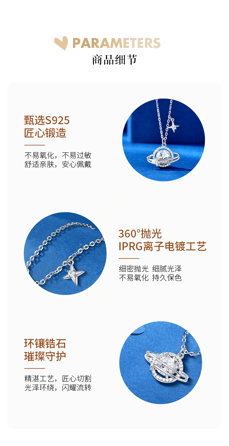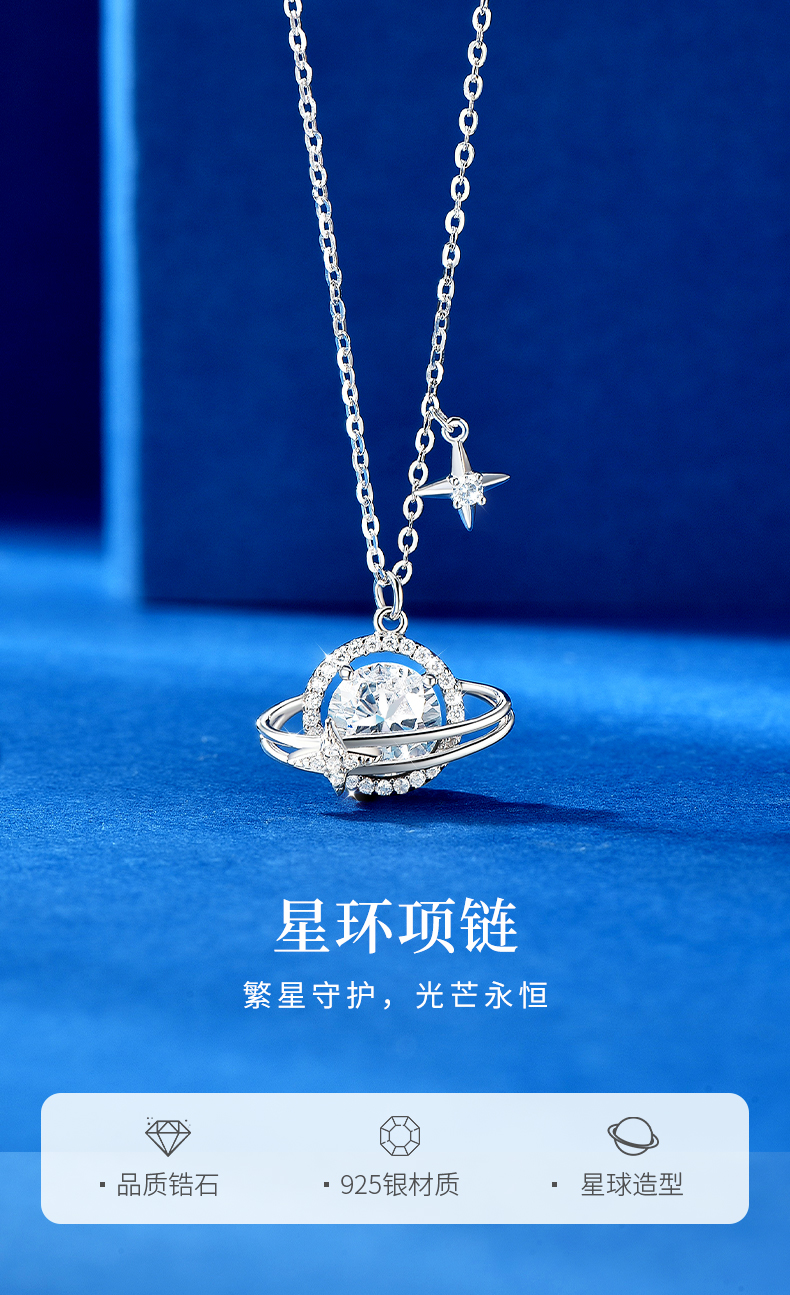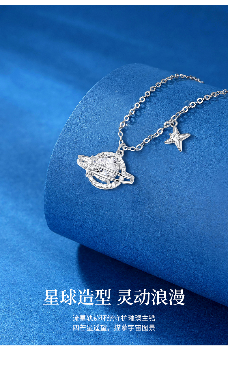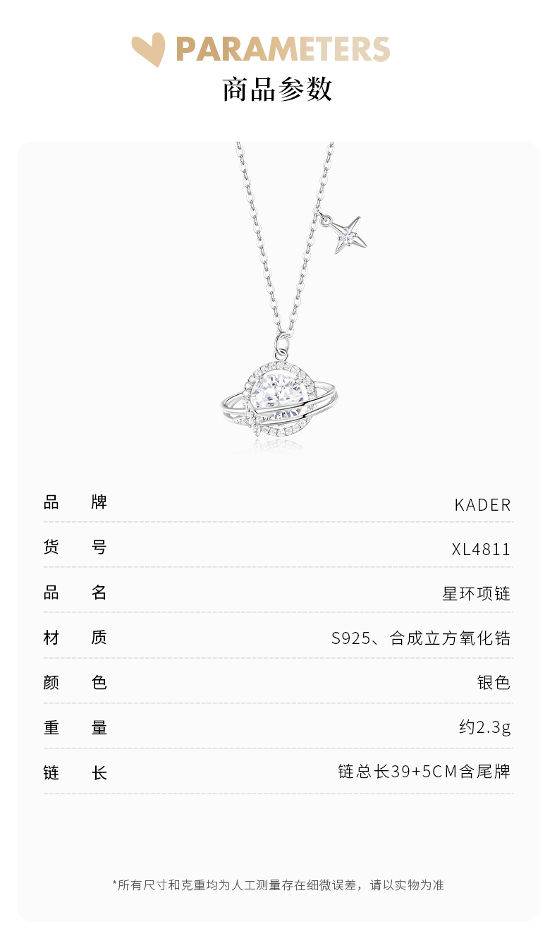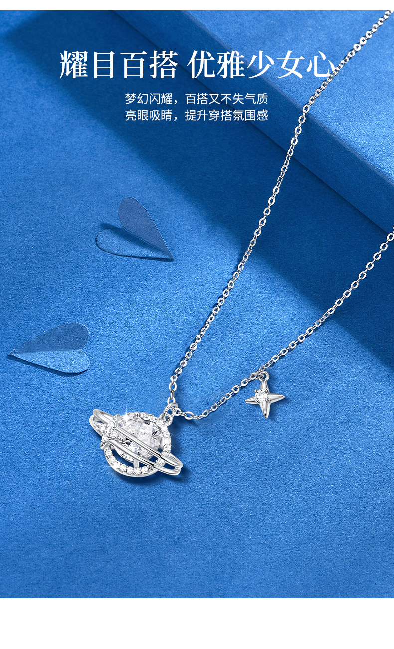 卡蒂罗KADER 星环项链 恋恋星球温柔简约小众设计吊坠 闪耀星点璀璨四芒星满镶嵌锆石小行星锁骨链 925银 项链 女款 银色 礼盒装圣诞礼送礼