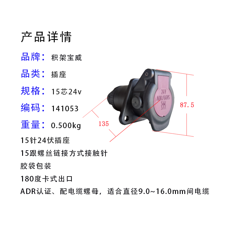 15芯24伏插座主挂连接线插座15P24V积架宝威JJBW-141053(包邮)