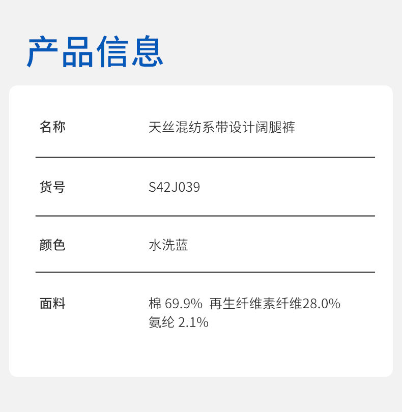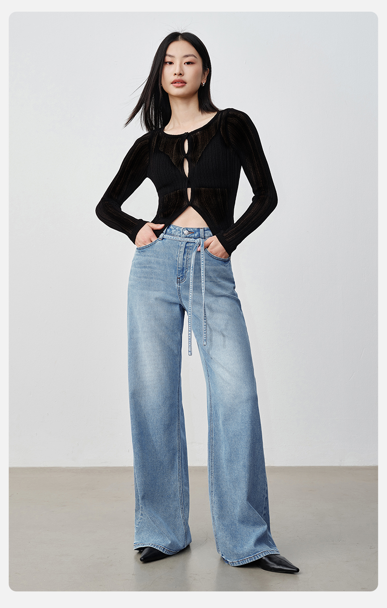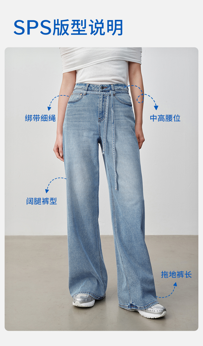 【天丝系带阔腿裤】SPS牛仔细长直腿梨形友好simplepiecesS42J039