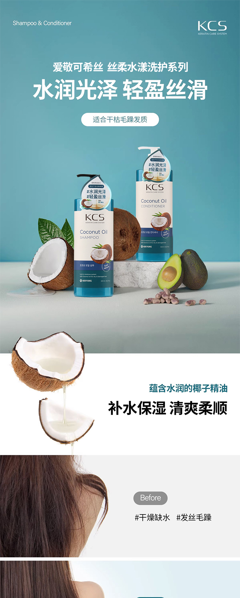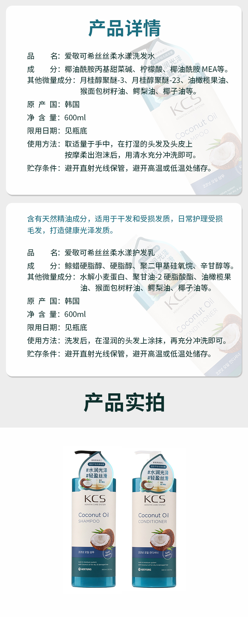 韩国进口爱敬可希丝丝柔水漾型洗发水600ml