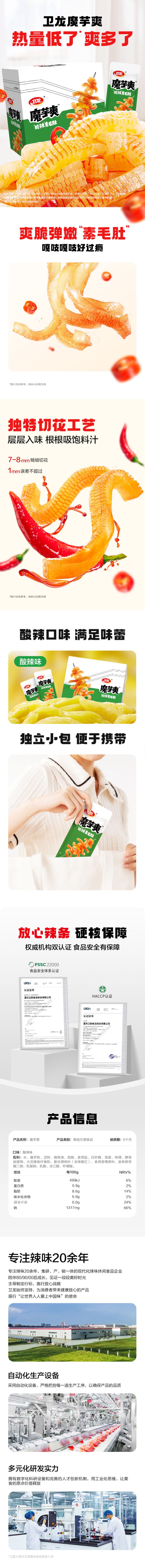 卫龙魔芋爽辣条酸辣味素毛肚 300g 休闲小零食便携20小包