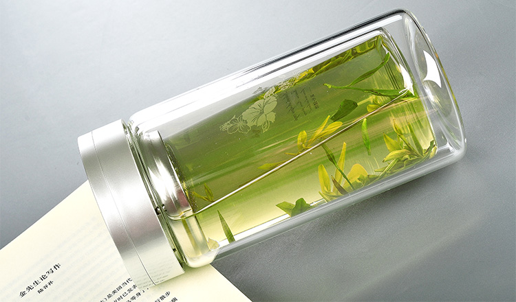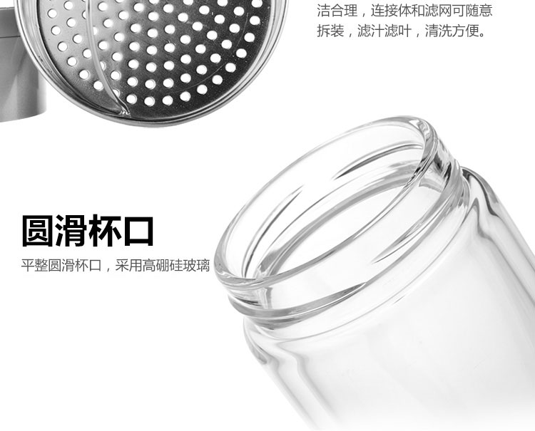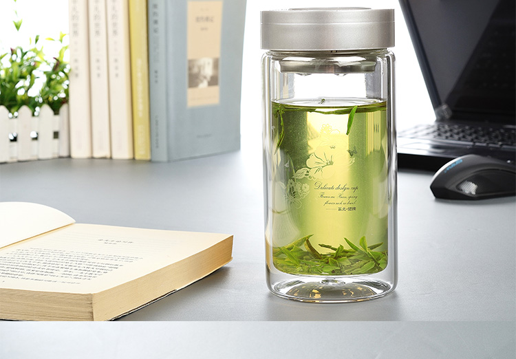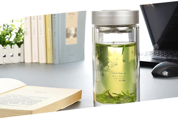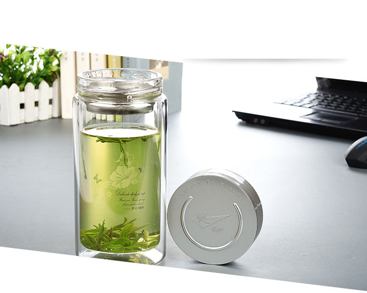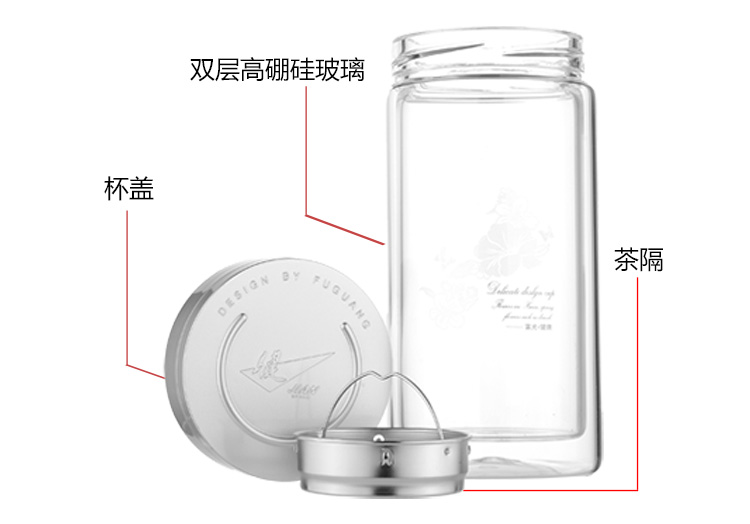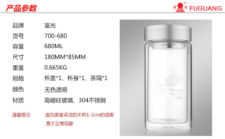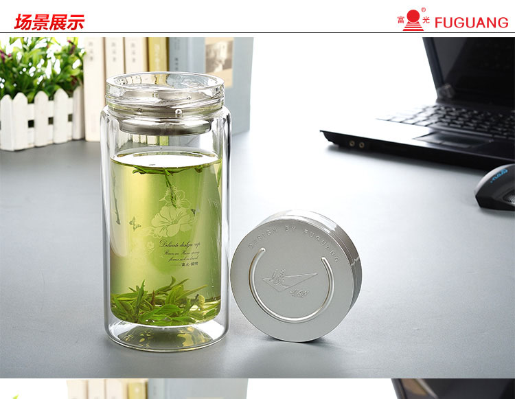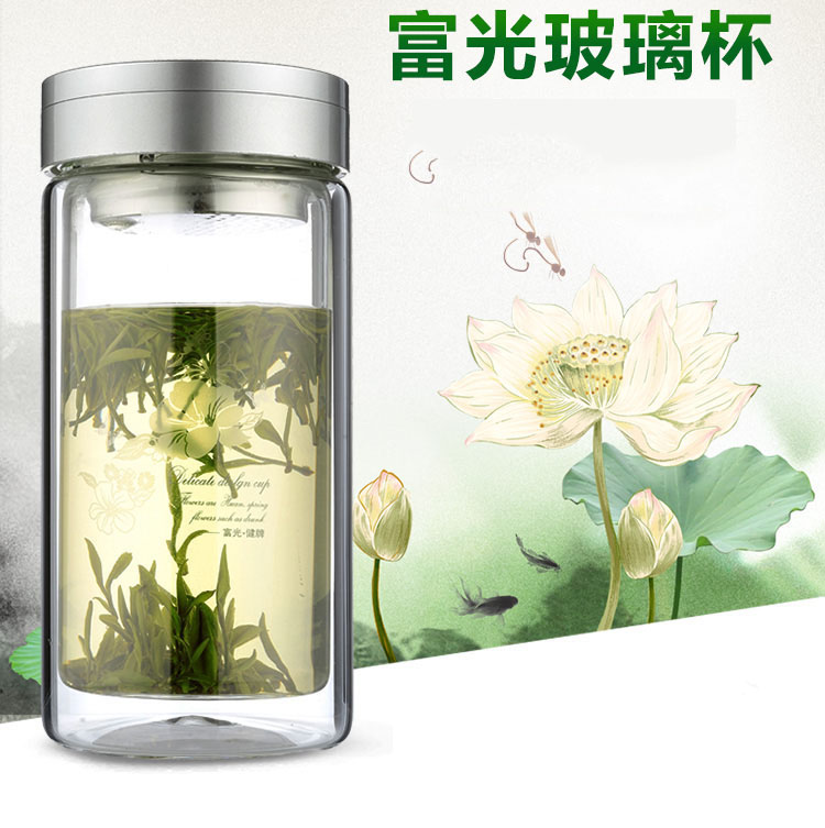 富光 健牌系列双层玻璃杯泡茶杯 耐热茶杯 大容量商务男女办公水杯子 680ML