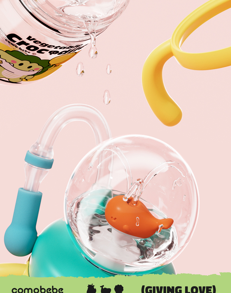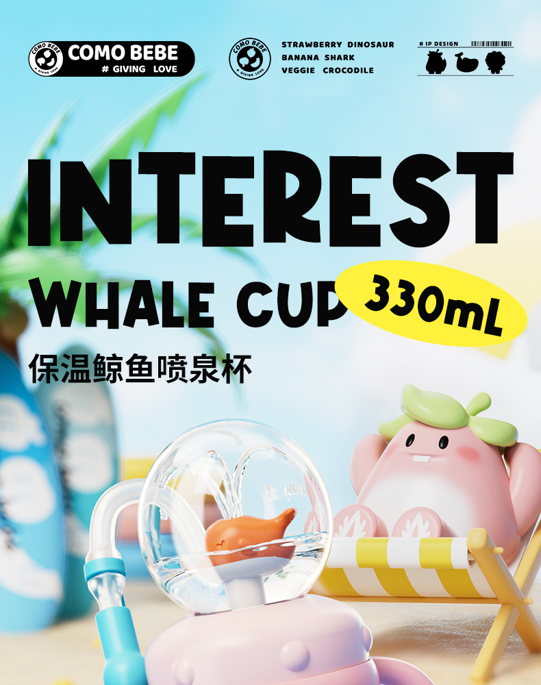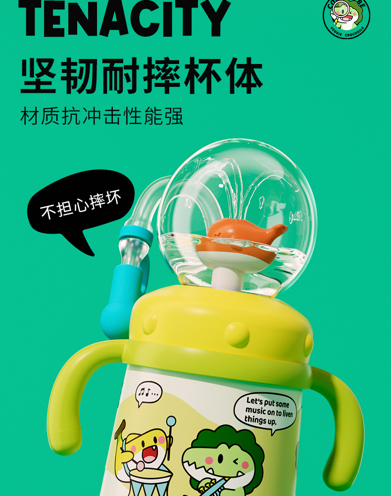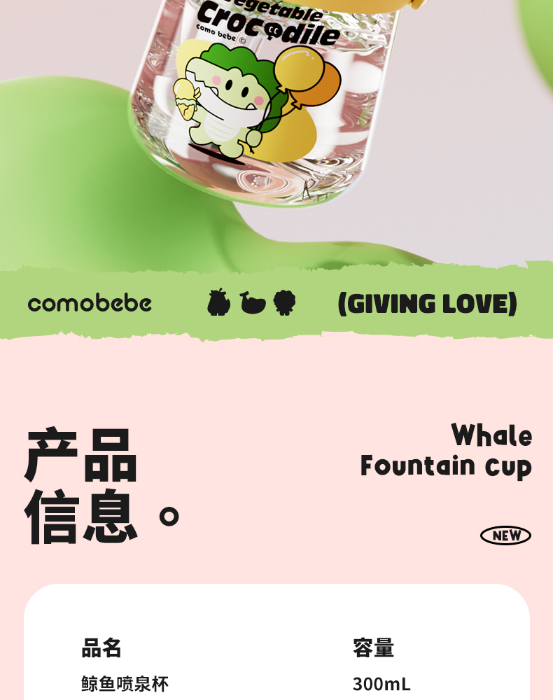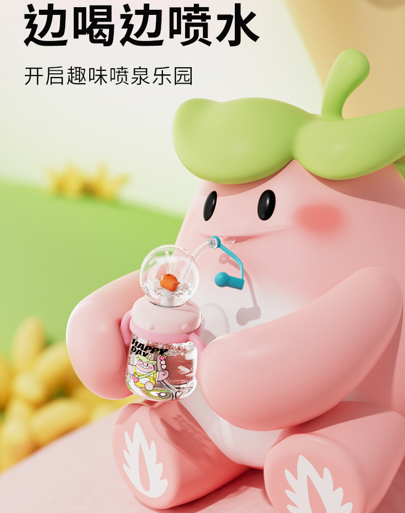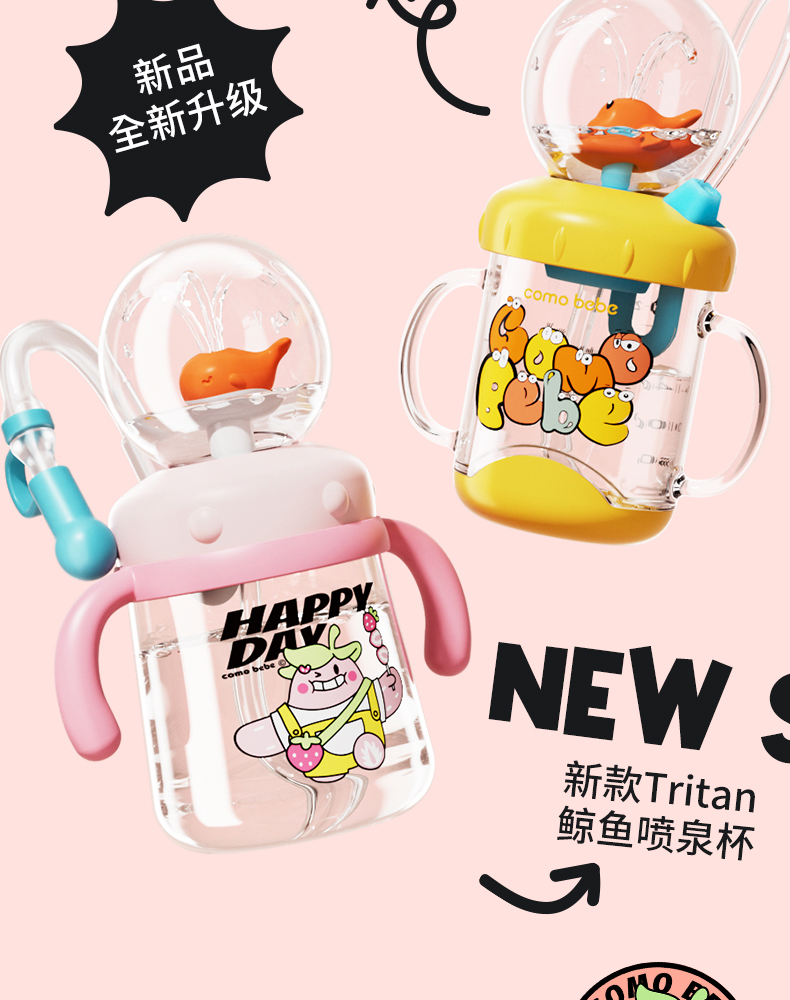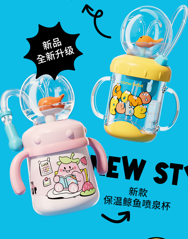 【趣味喷水鲸鱼杯】儿童Tritan材质水杯鲸鱼喷水杯宝宝保温杯幼儿园家用吸管杯婴儿喝水饮水杯 四季可用