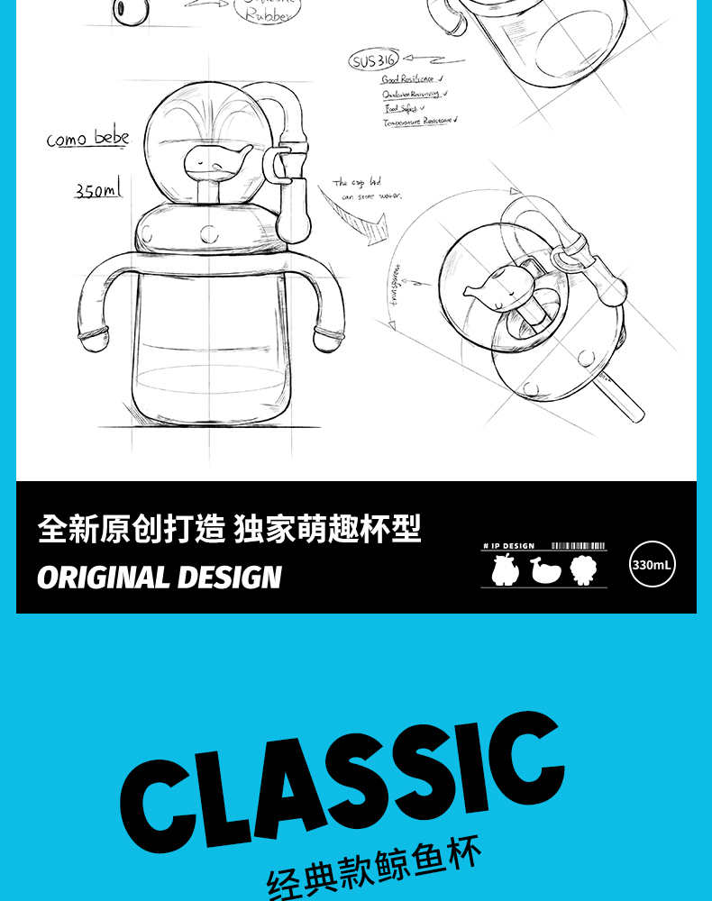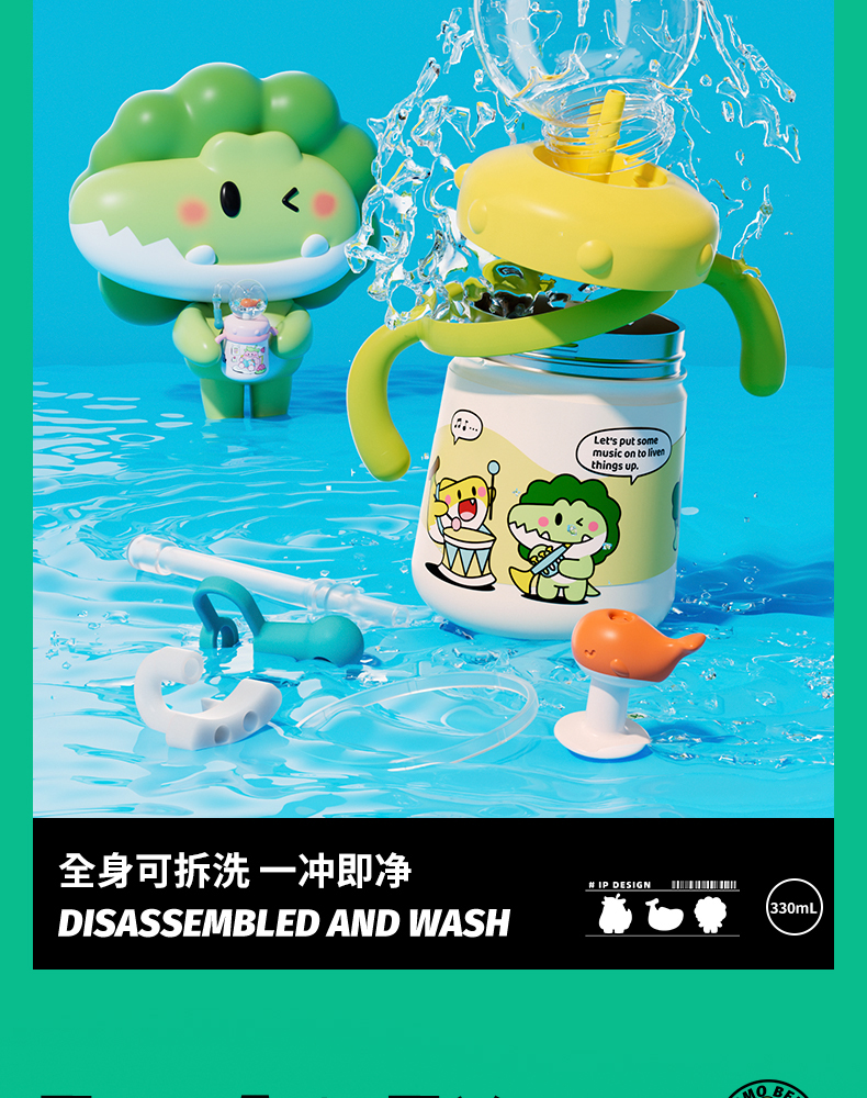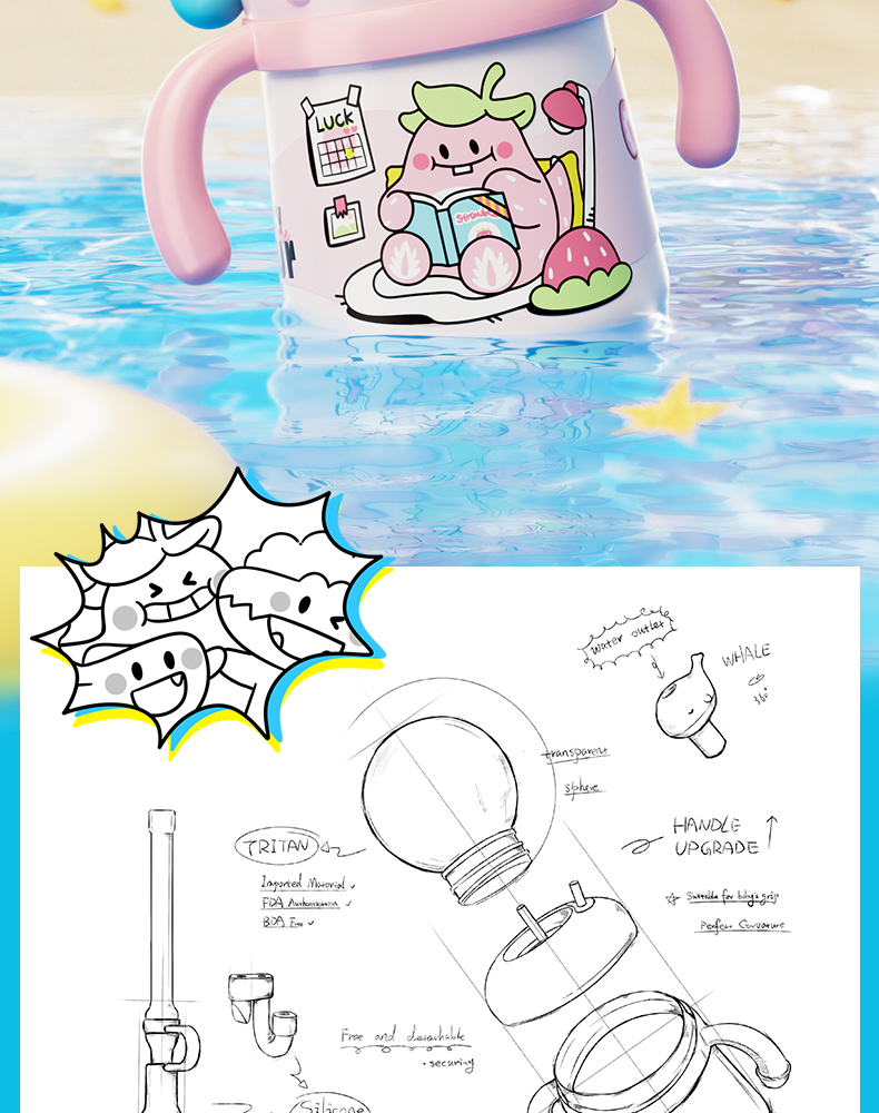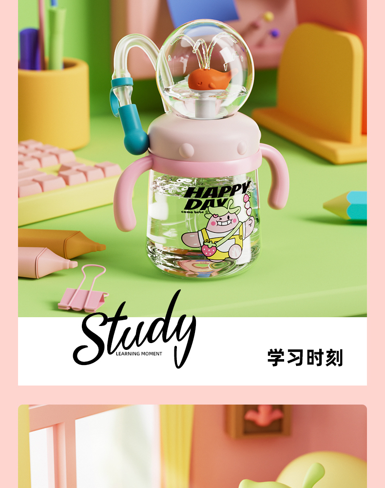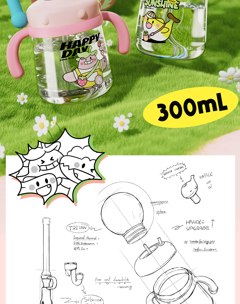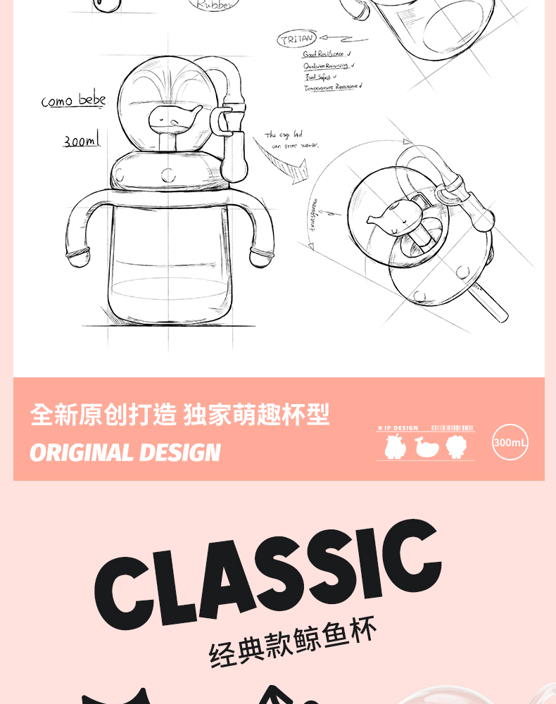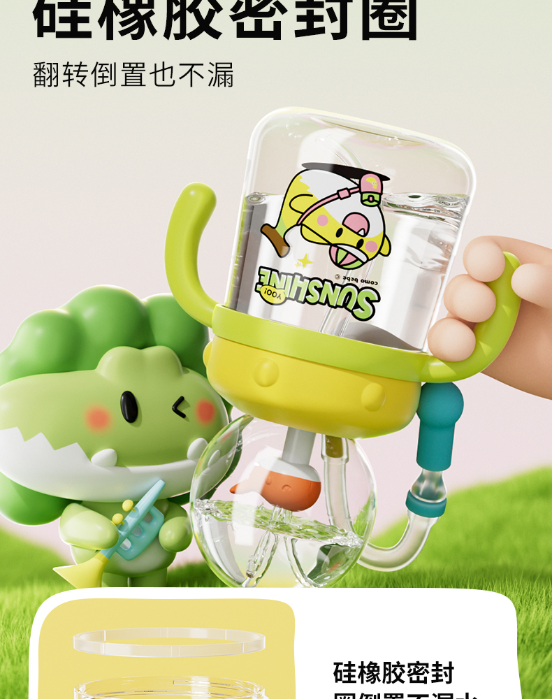 【趣味喷水鲸鱼杯】儿童Tritan材质水杯鲸鱼喷水杯宝宝保温杯幼儿园家用吸管杯婴儿喝水饮水杯 四季可用