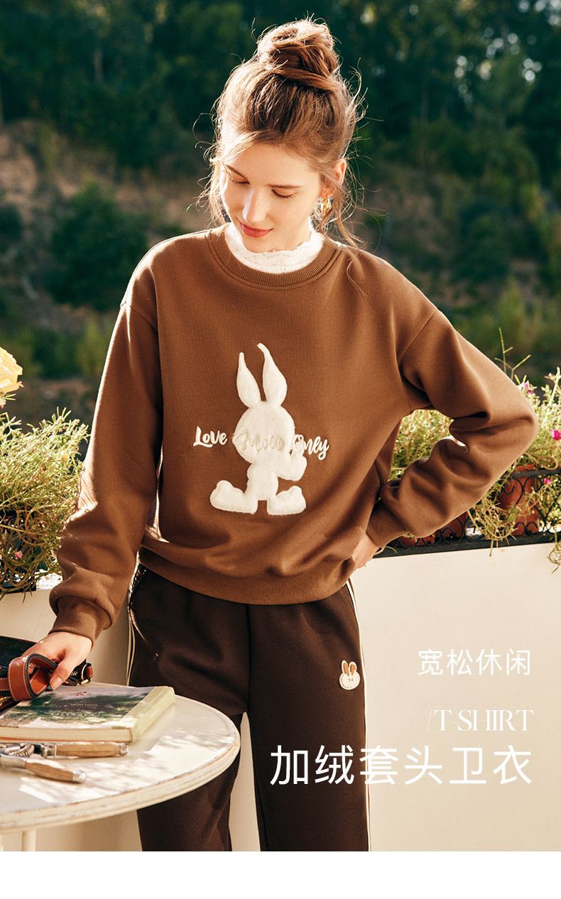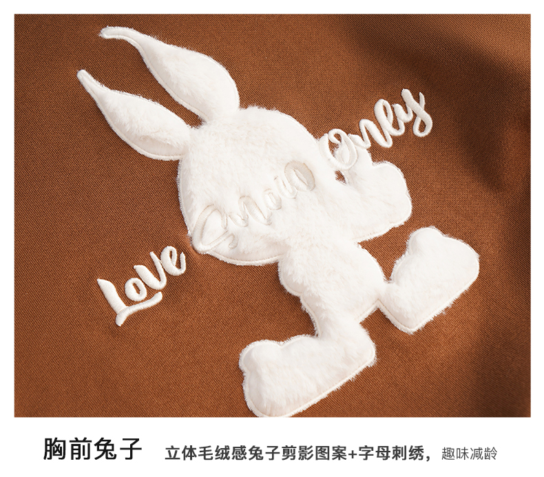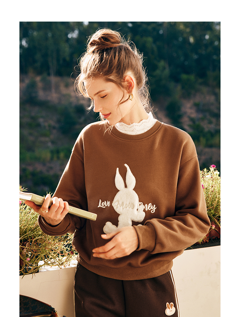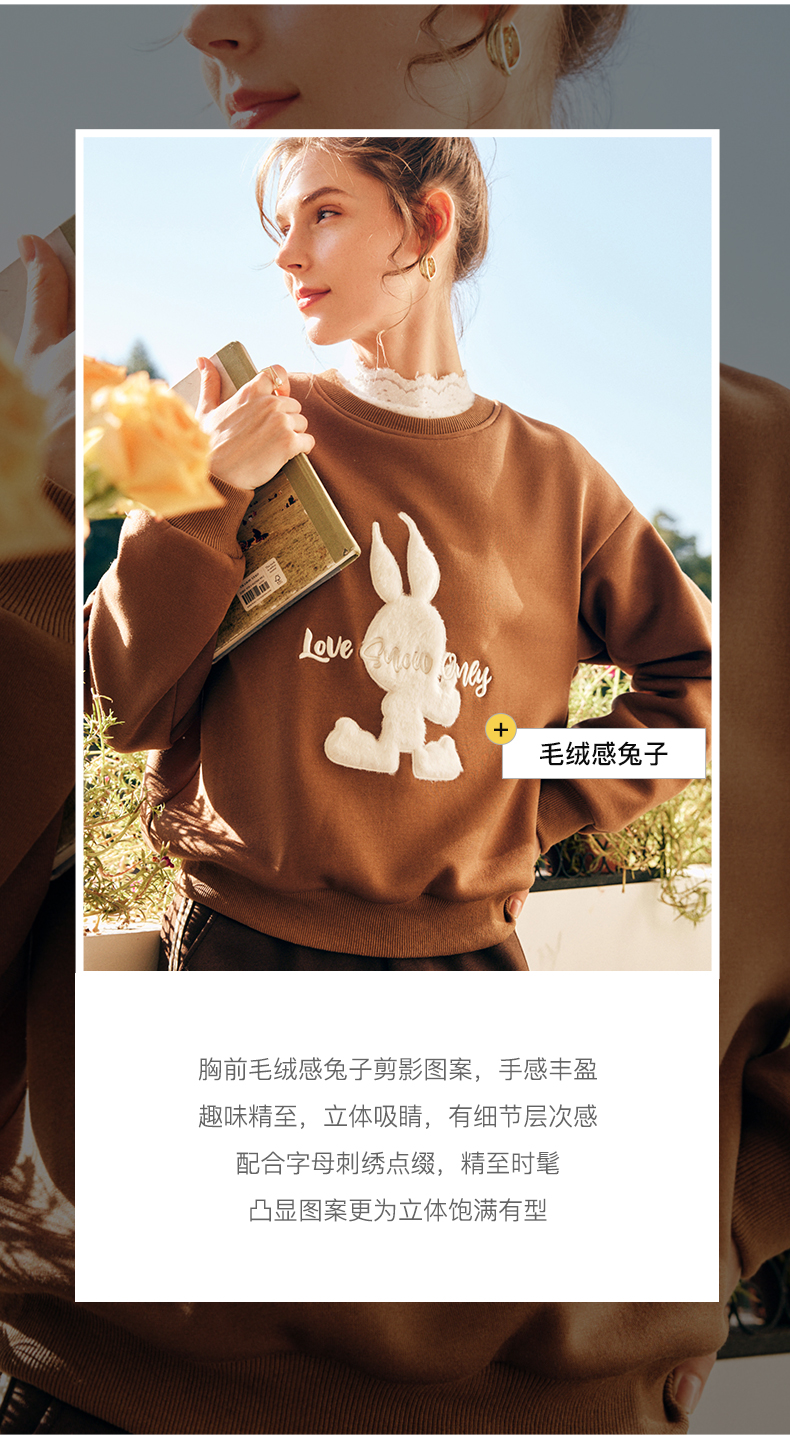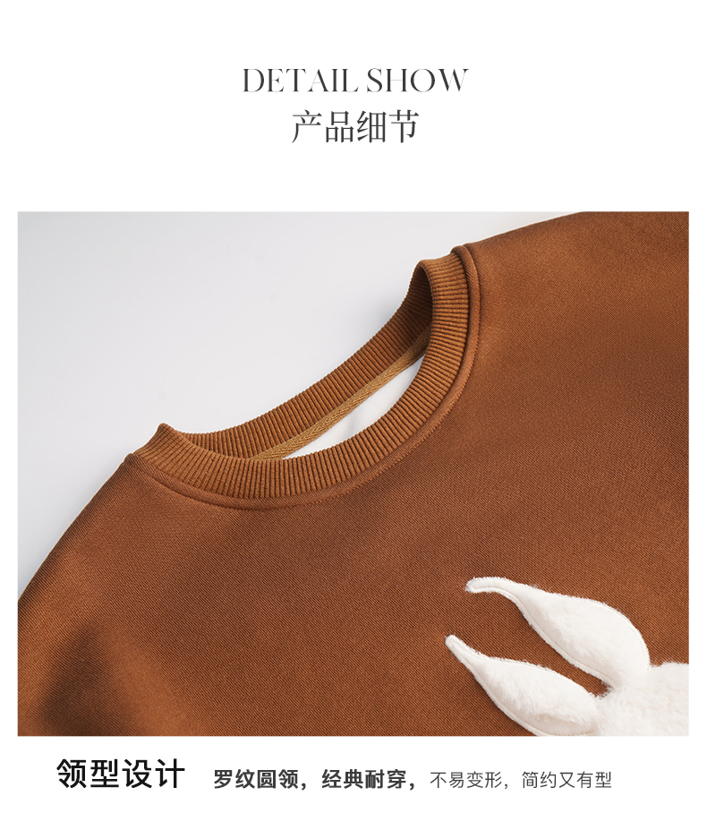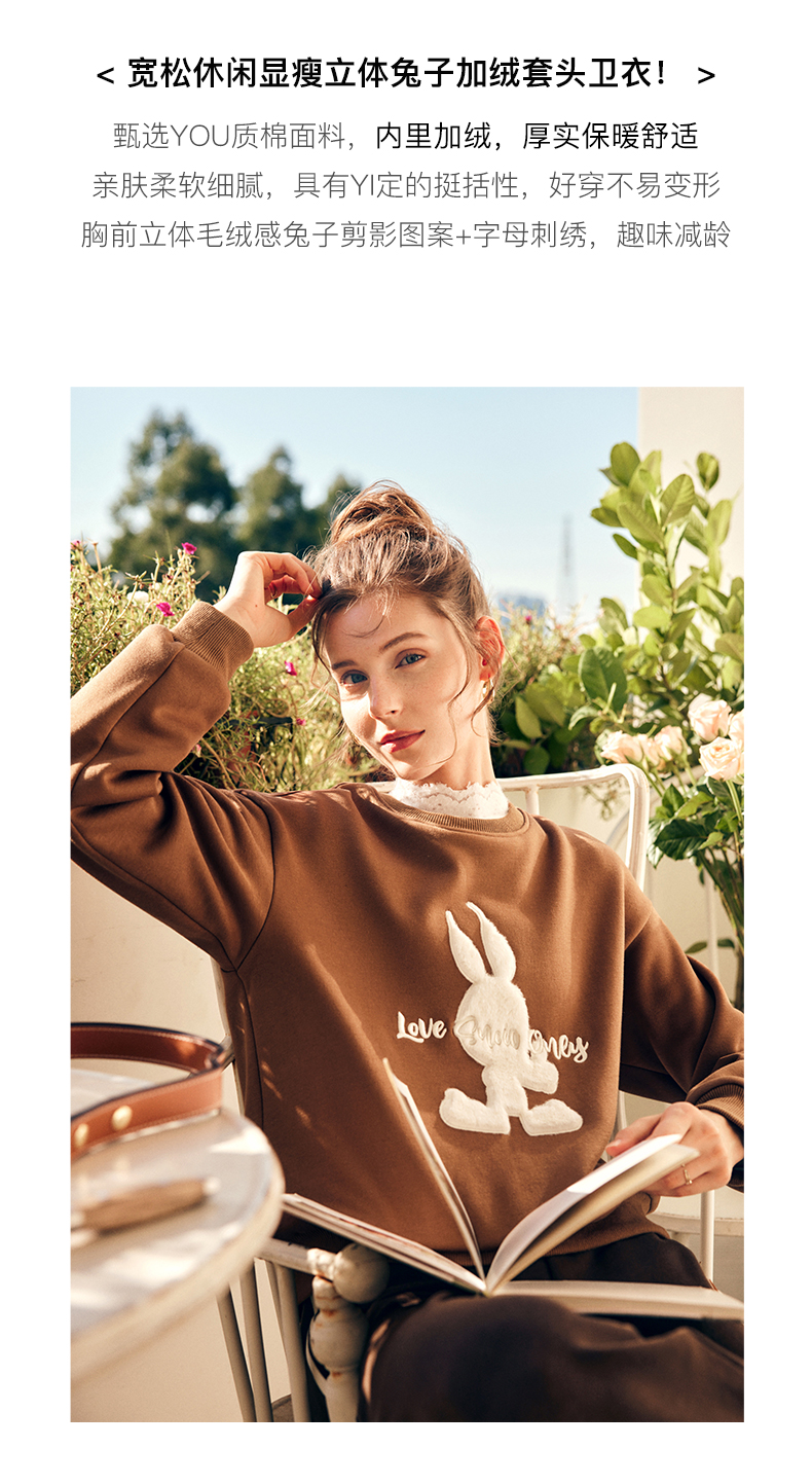OLrain欧芮儿法式加绒圆领卫衣女秋冬2022年新款立体兔子纯棉上衣
