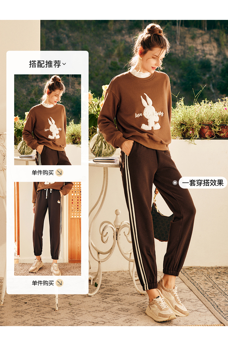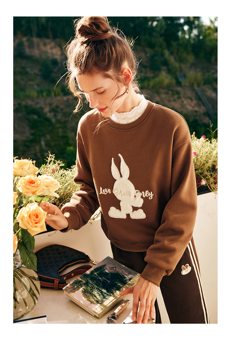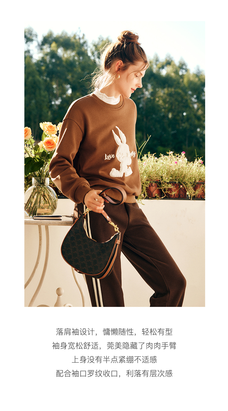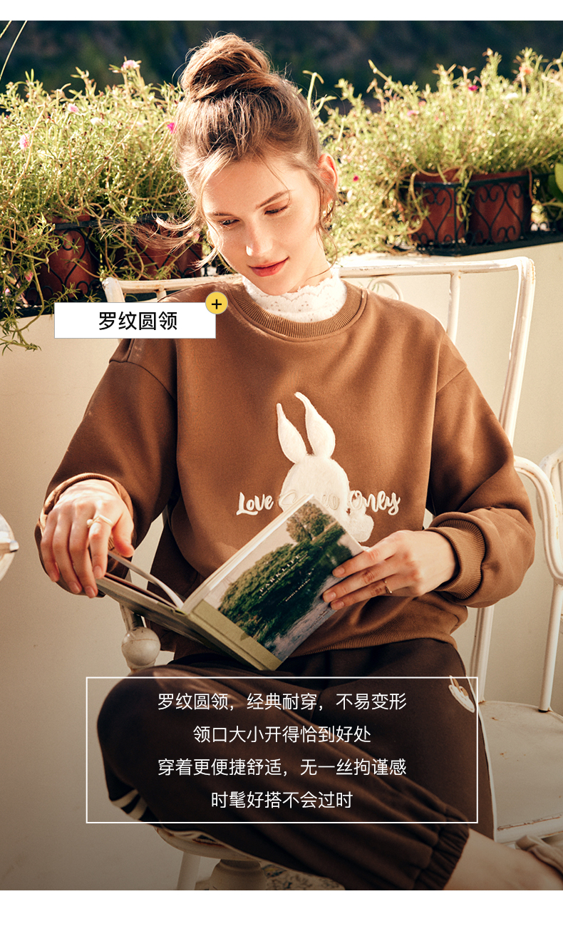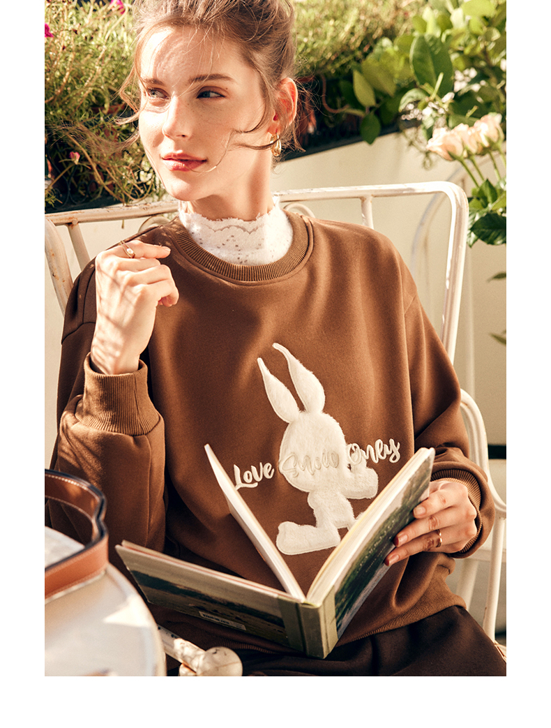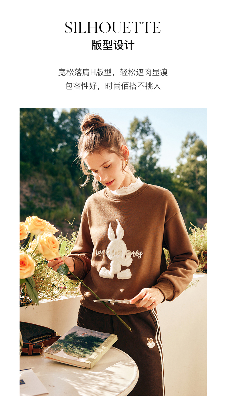 OLrain欧芮儿法式加绒圆领卫衣女秋冬2022年新款立体兔子纯棉上衣