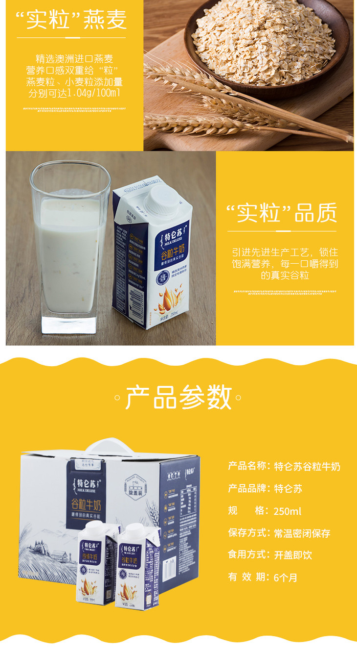 特仑苏谷粒牛奶全脂调制乳康美笑脸包250ml×10包(礼盒装)