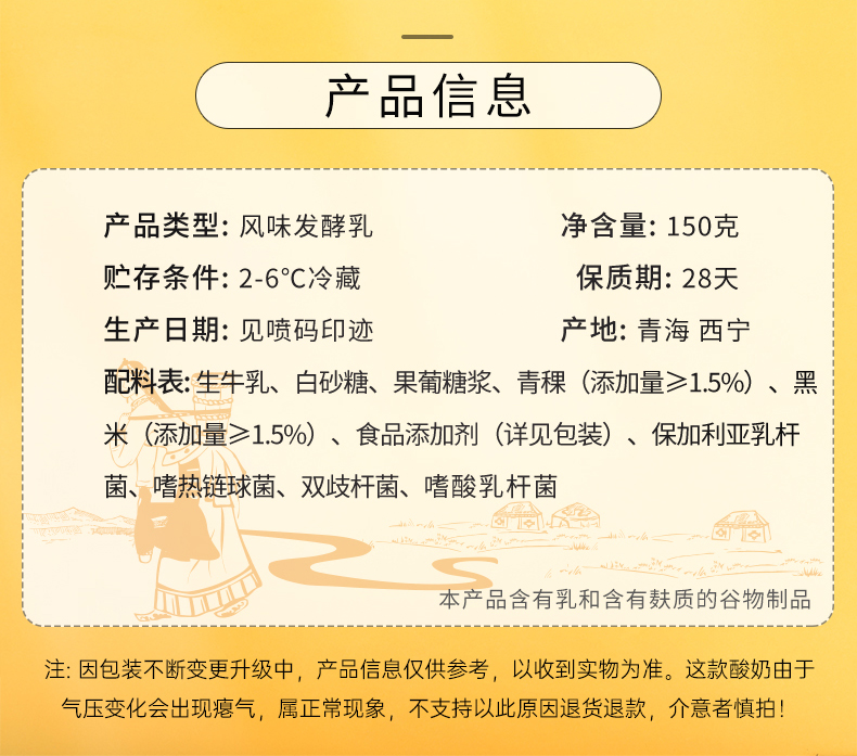 【光明&小西牛】青海谷物青稞黑米酸奶150gx12杯/箱