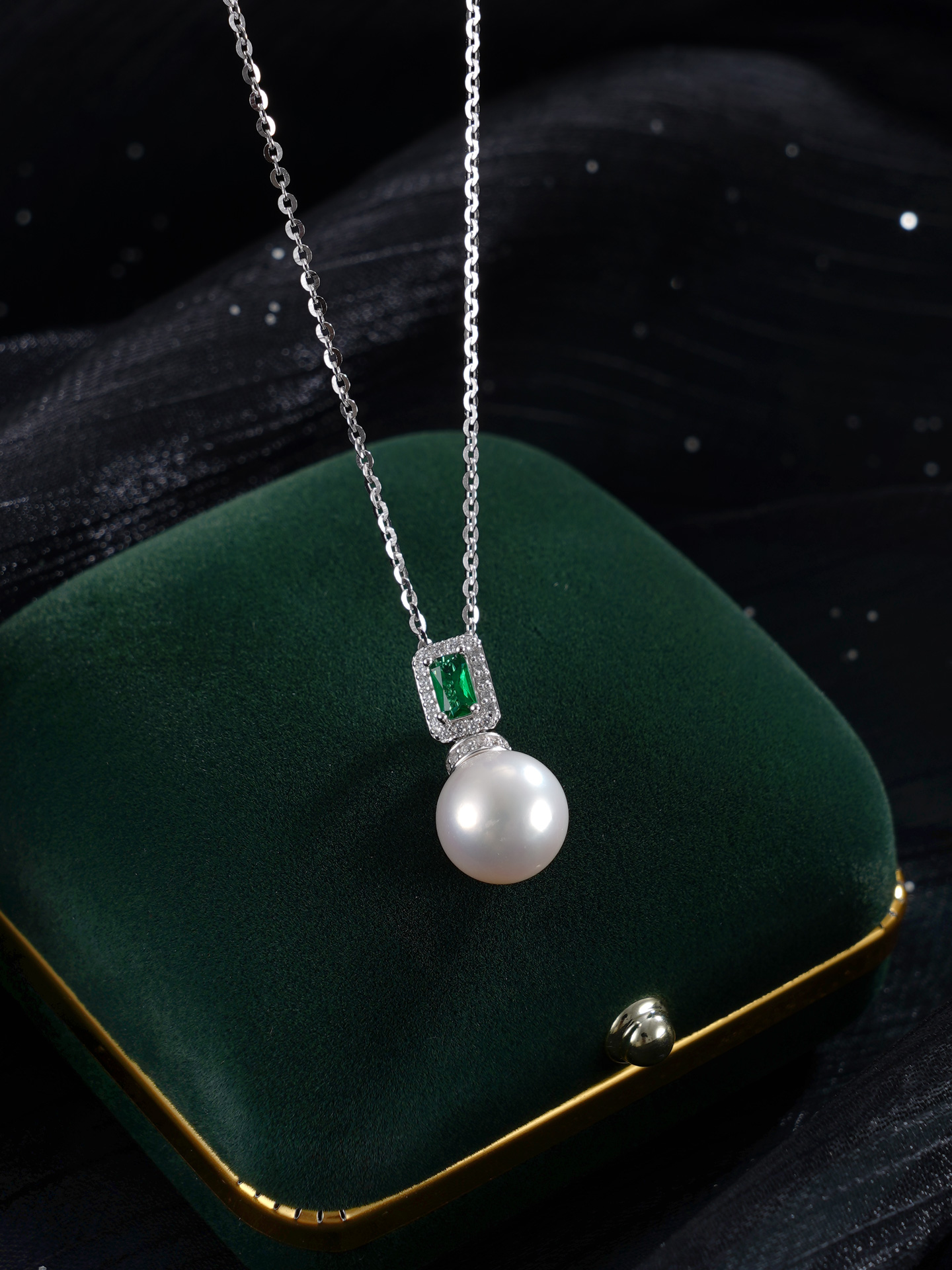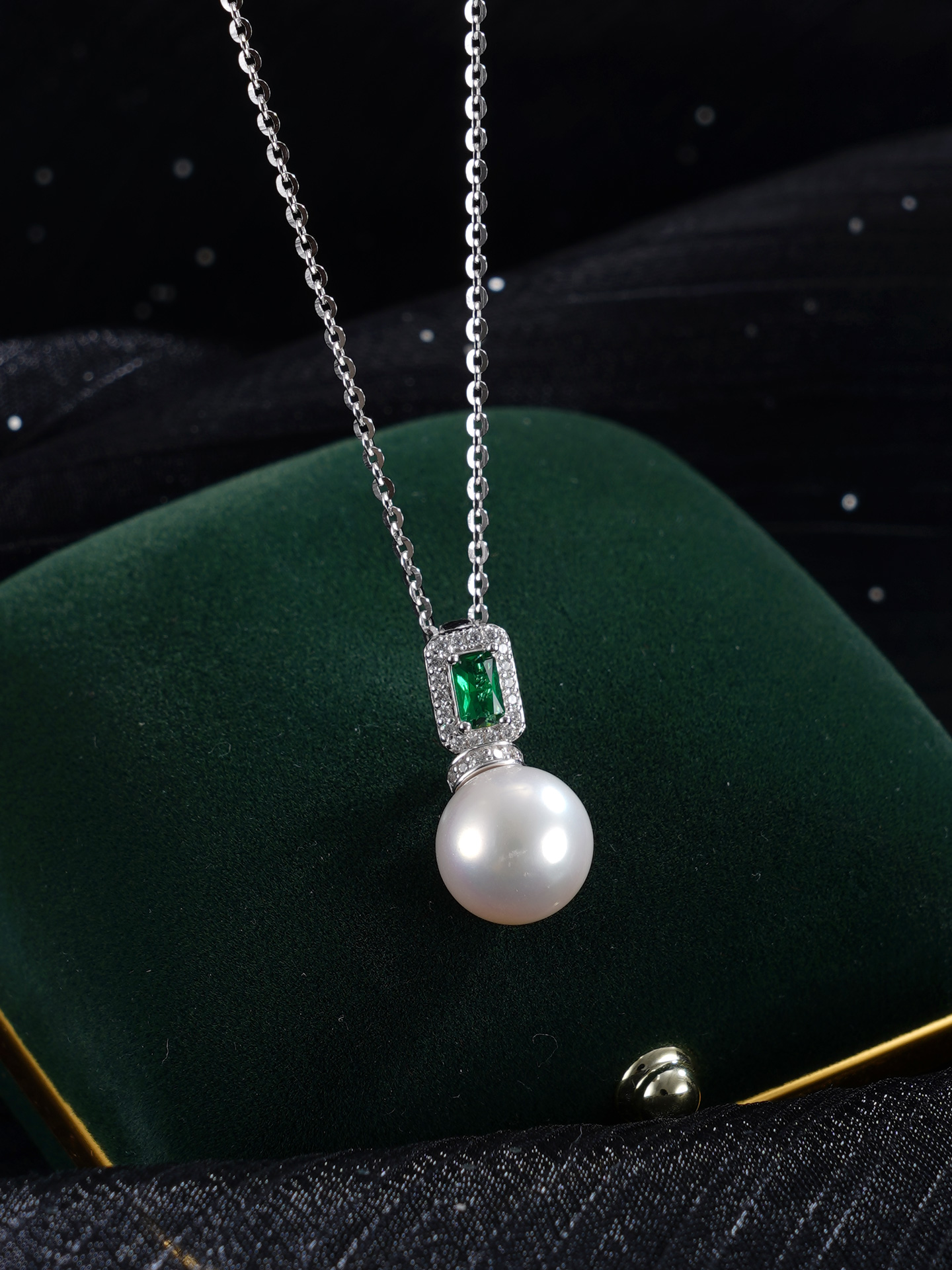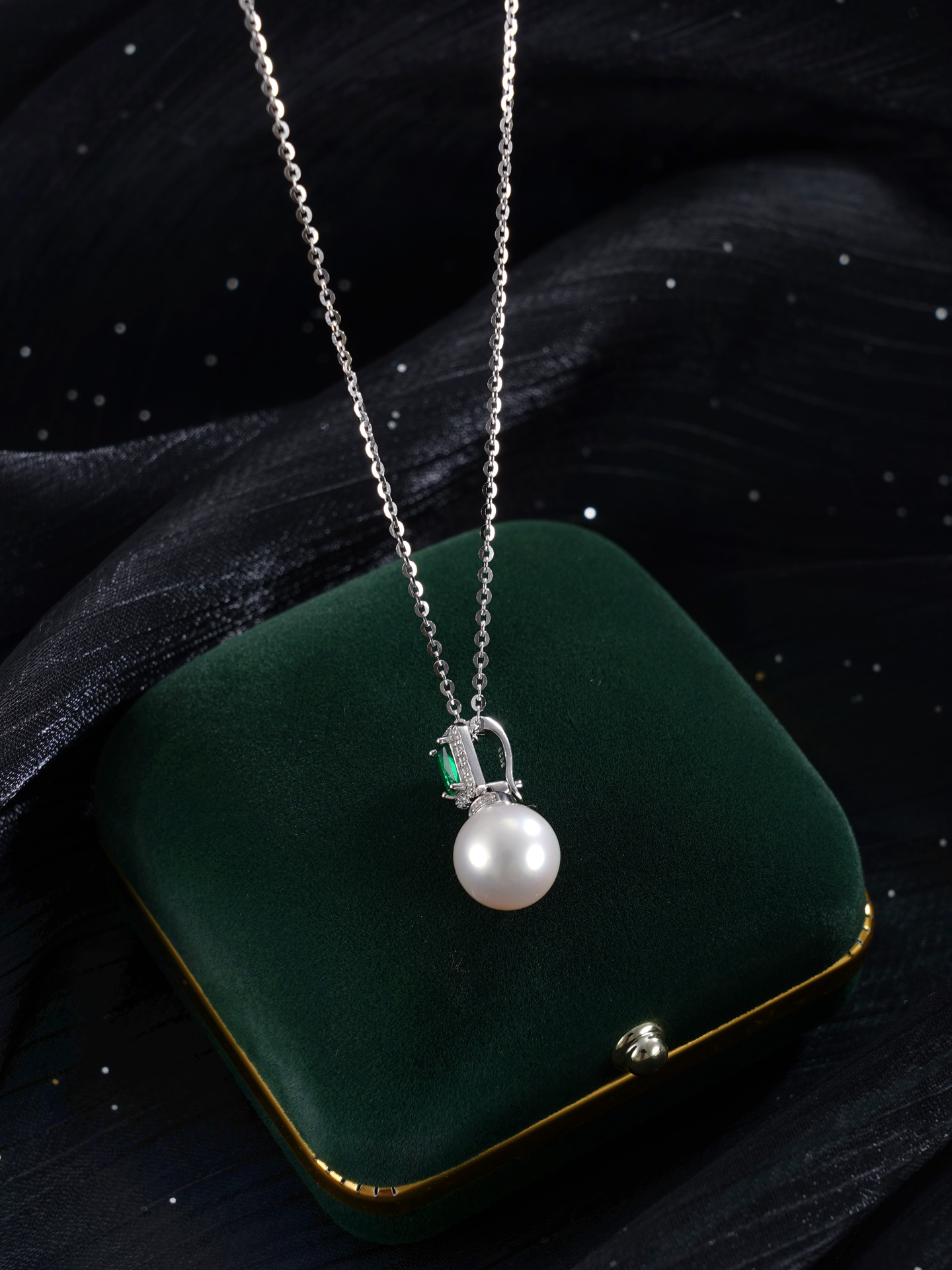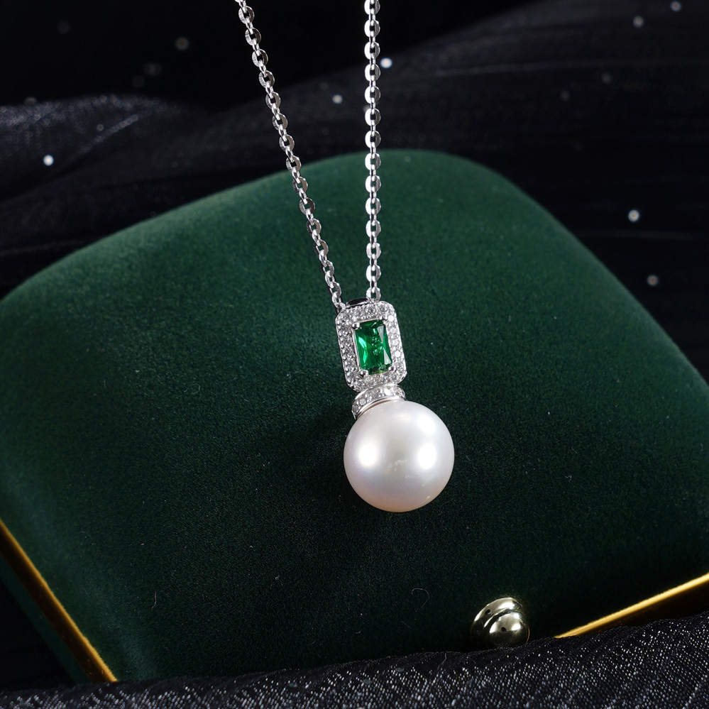 子佩集【珍情不渝】银S925珍珠惜王妃吊坠【P2864】10mm珠双色绿方块(不含链)2601
