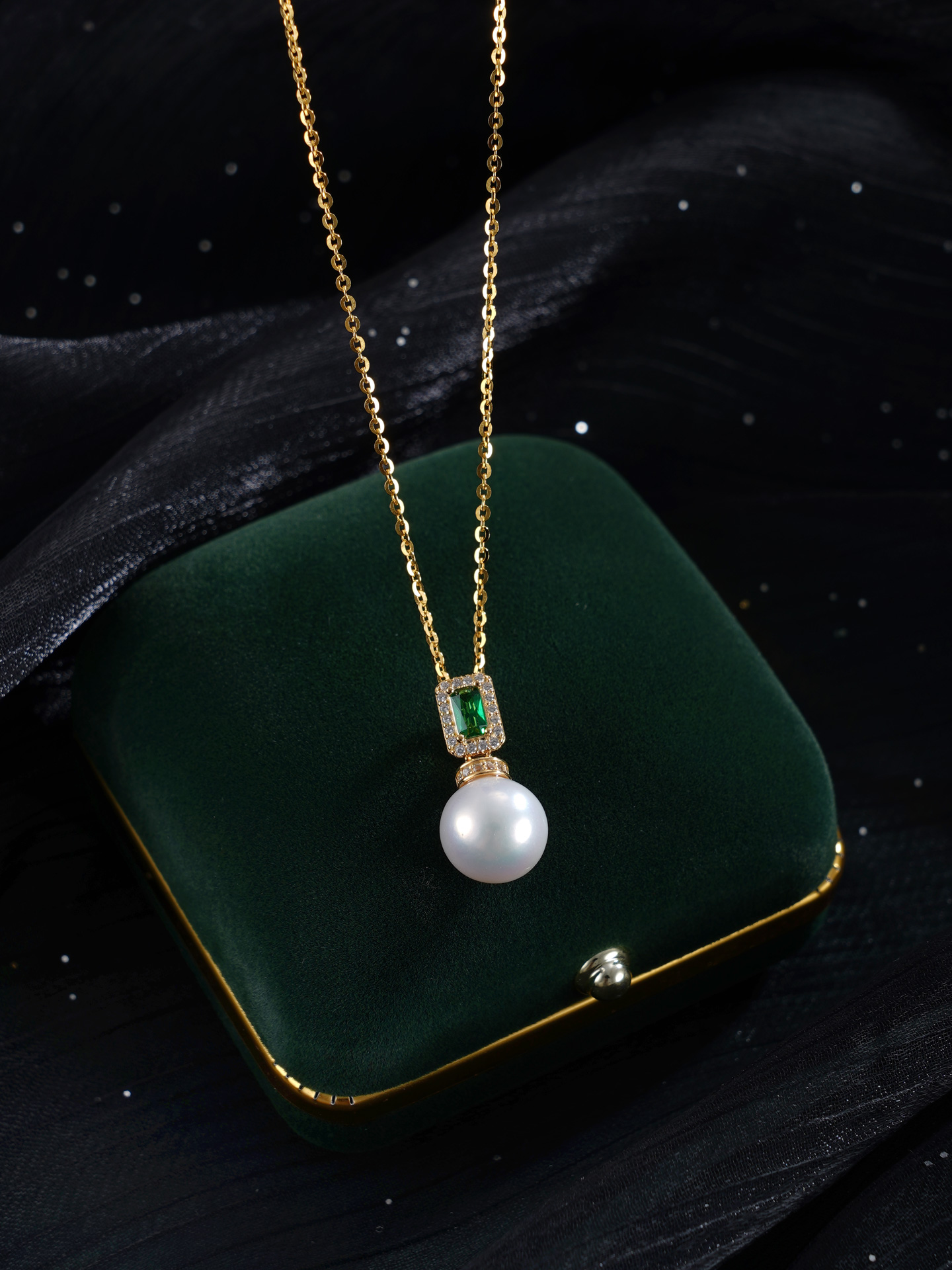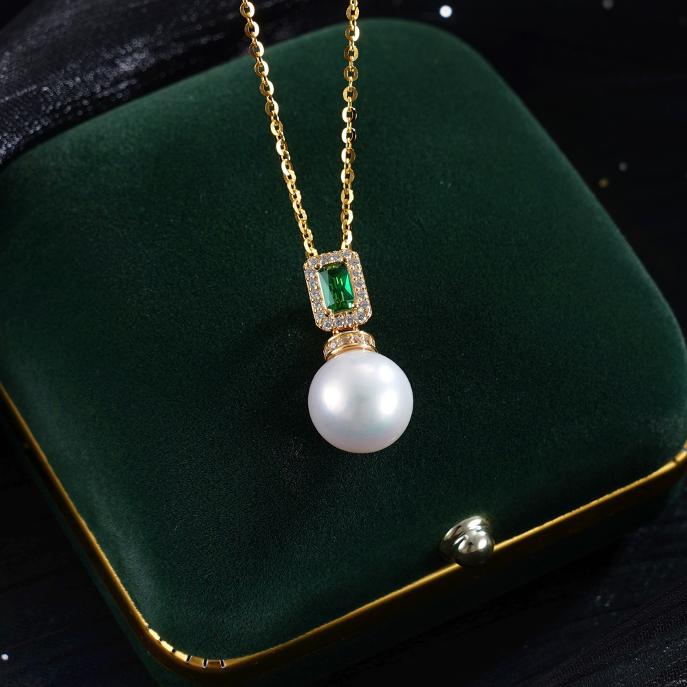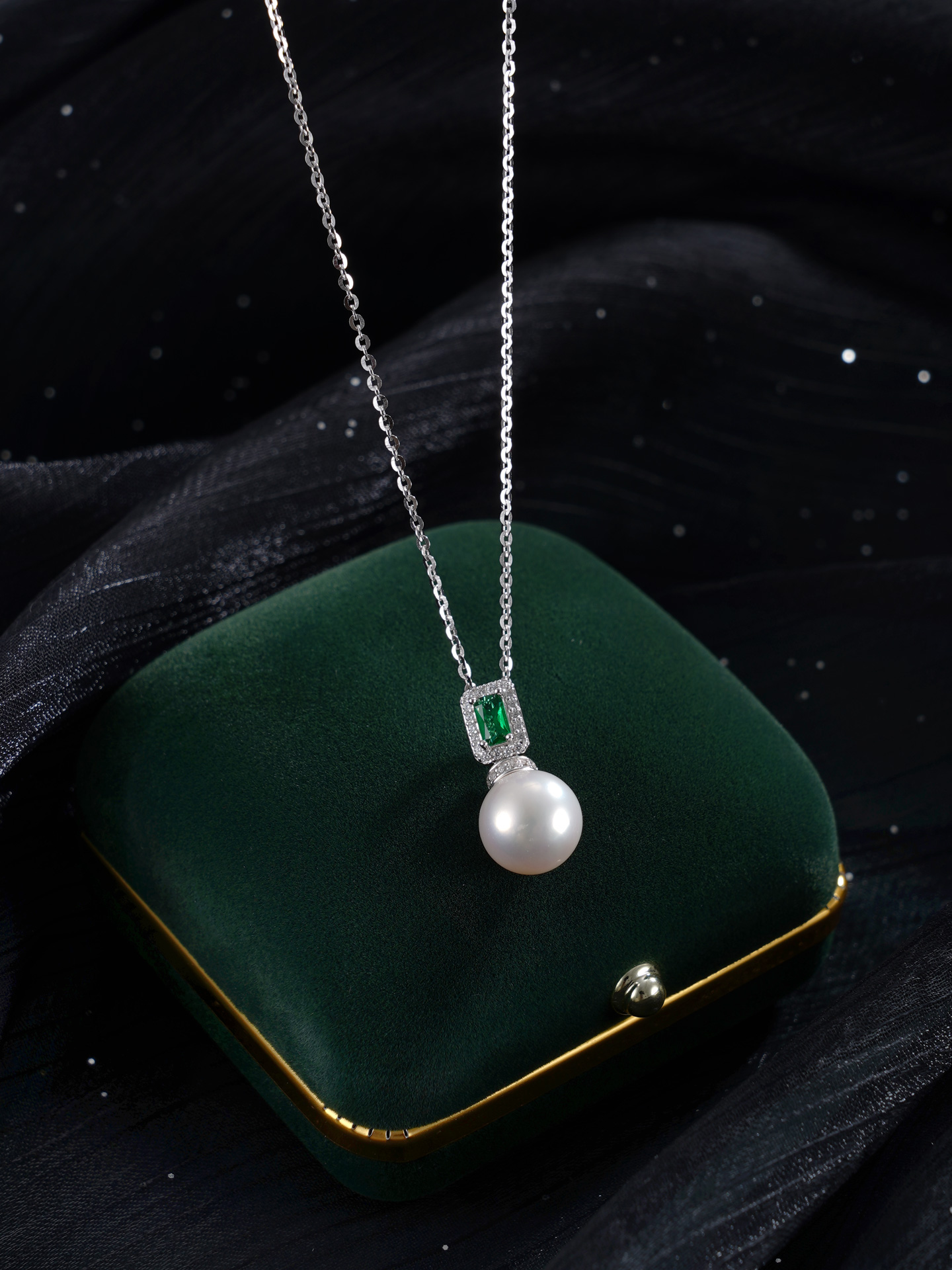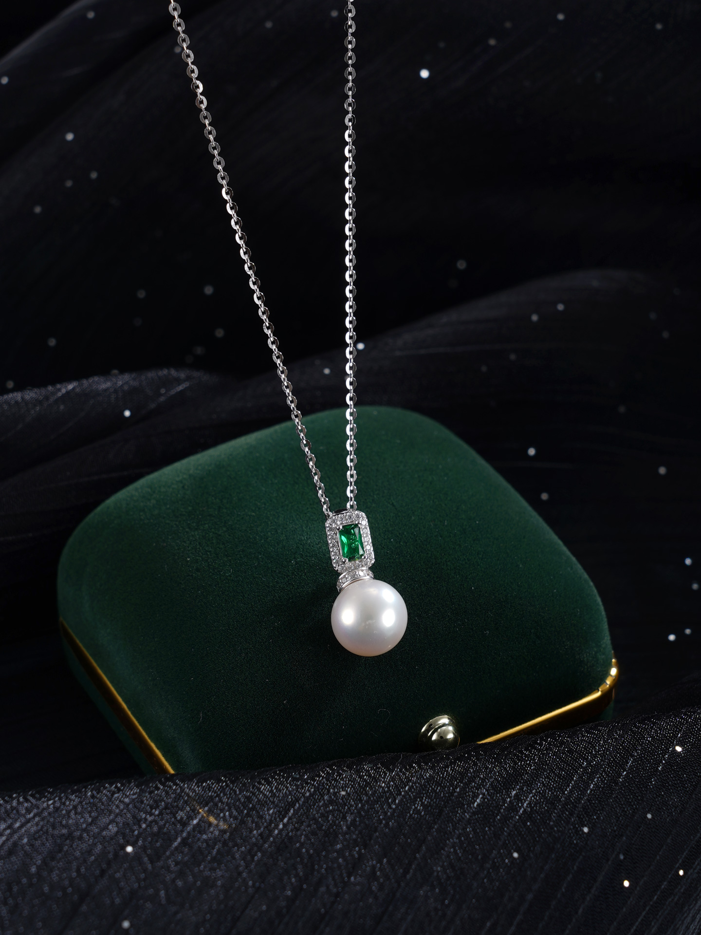 子佩集【珍情不渝】银S925珍珠惜王妃吊坠【P2864】10mm珠双色绿方块(不含链)2601