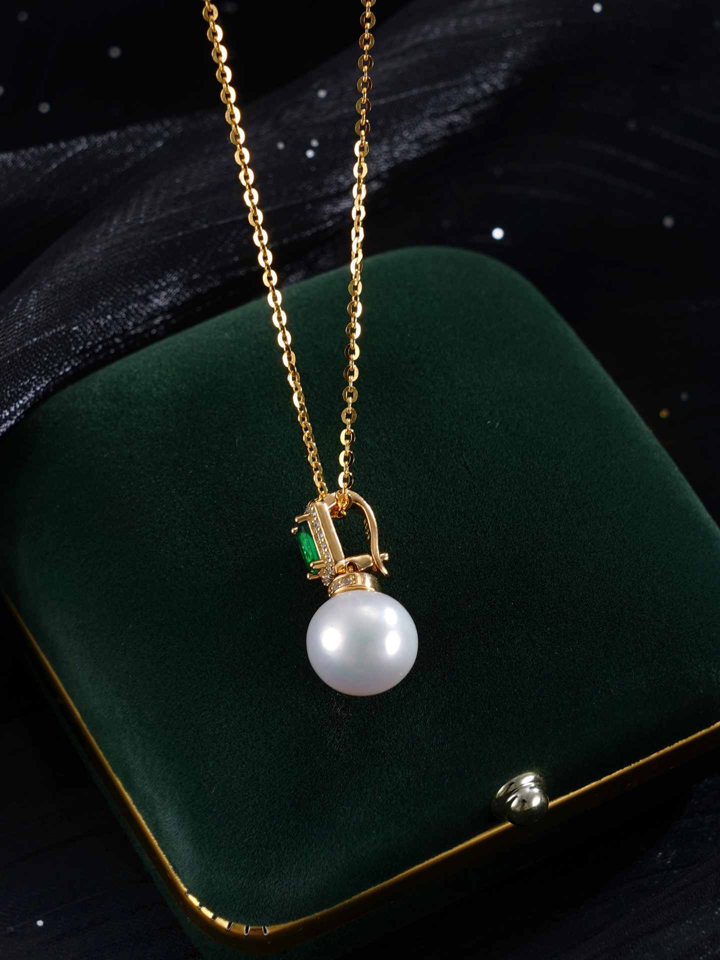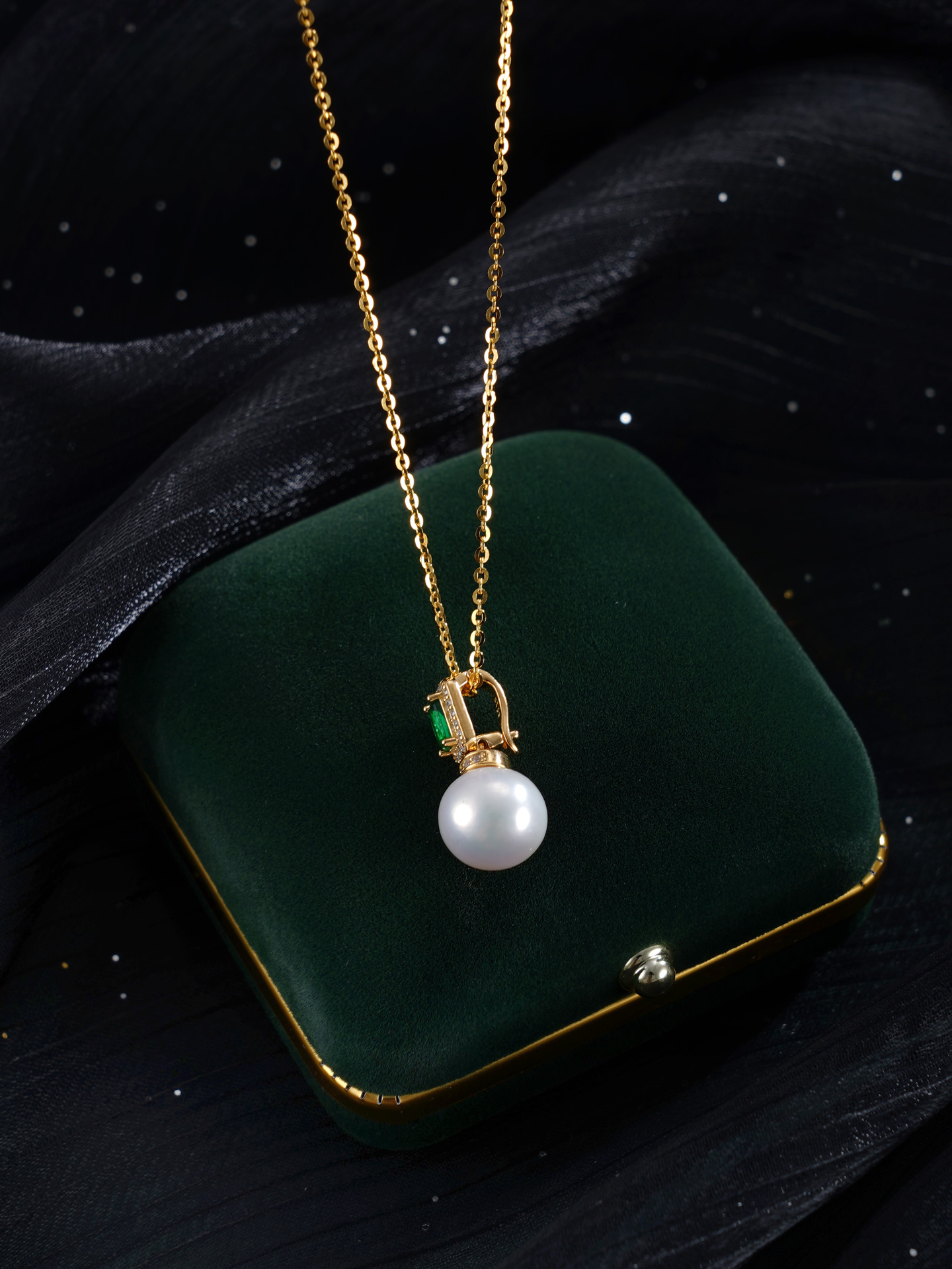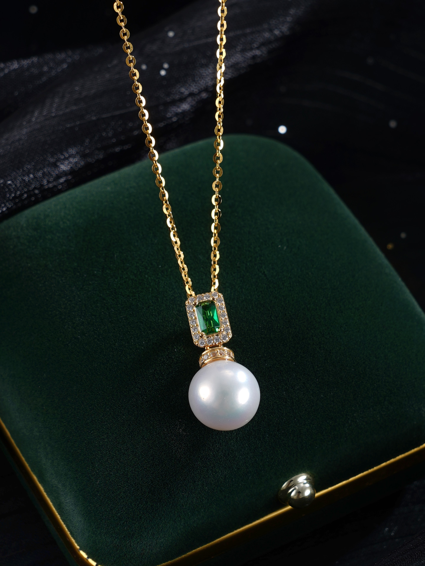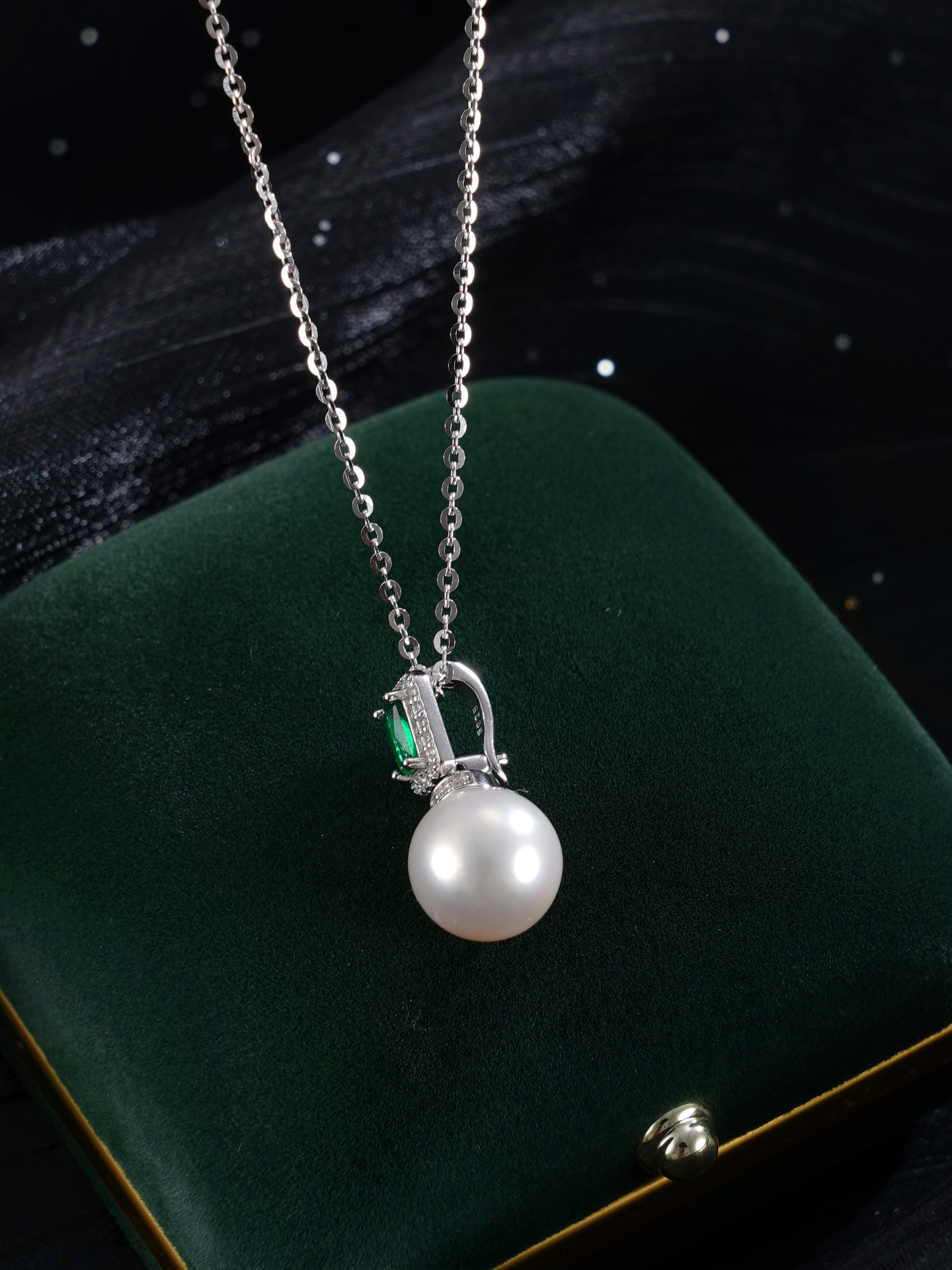 子佩集【珍情不渝】银S925珍珠惜王妃吊坠【P2864】10mm珠双色绿方块(不含链)2601