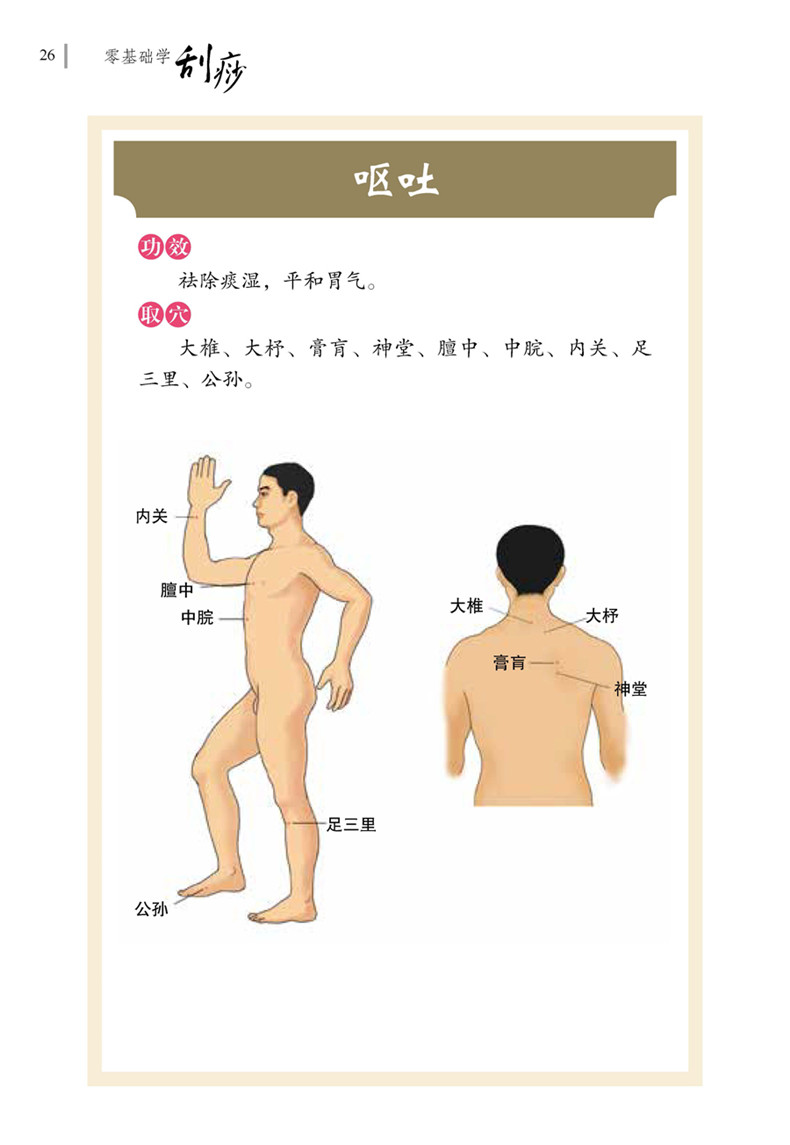 *章︱刮痧疗法基础知识 1 刮痧疗法的神奇功效2 刮痧手法要领4 刮痧前的准备7 刮痧过程决定健康效果9 刮痧后的警惕事项13 常用刮痧穴位15 第二章︱常见病症的刮痧疗法23 落枕24 呕吐26 中暑28 头痛30 呃逆32 感冒34 咳嗽36 高血压病38 低血压病40 胃下垂42 胃痛44 腹泻46 便秘48 糖尿病50 高脂血症52 痛风54 肩周炎56 颈椎病58 腰椎间盘突出症60 腰肌劳损62 失眠64 坐骨神经痛66 月经不调68 痛经70 闭经72 乳腺炎74 更年期综合征76 遗精78 早泄80 阳痿82 痤疮84 湿疹86 皮肤瘙痒88