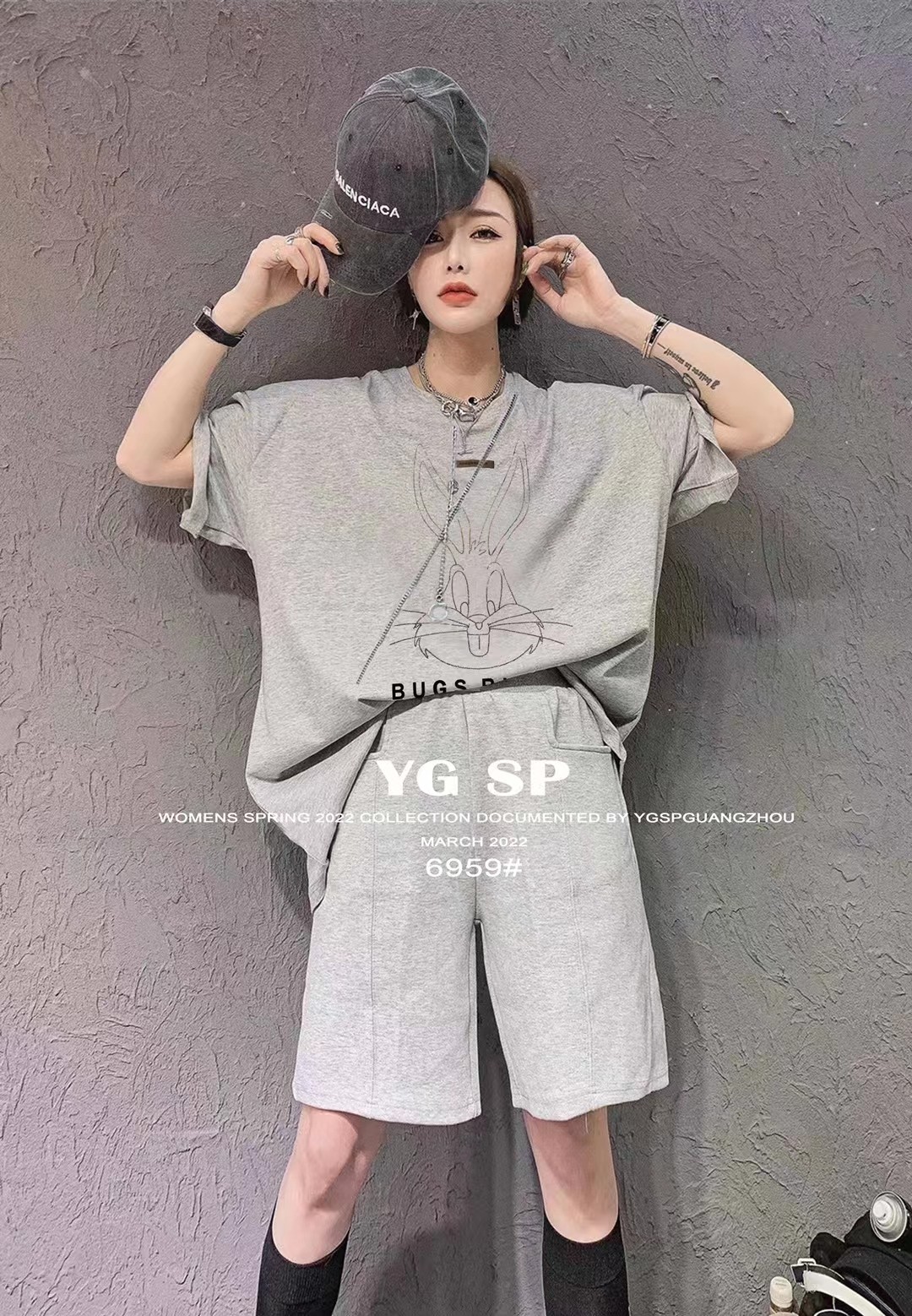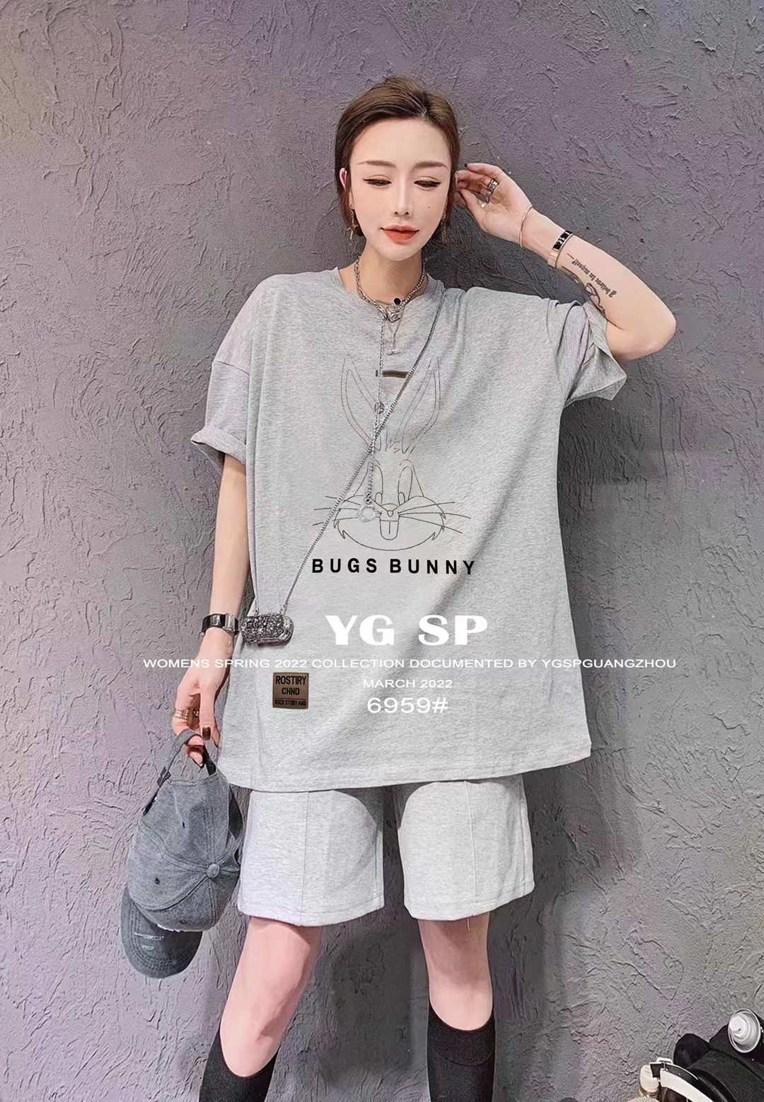 女前后烫钻兔短T6959