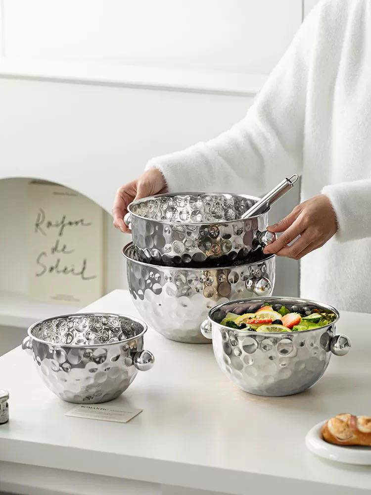 有被惊艳到xx秒【北欧风锤目纹沙拉碗】🥗独特纹理➕高颜值镜面工艺厨房秒变ins风~宝藏碗具闭眼入😆