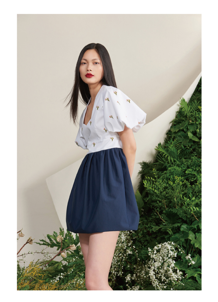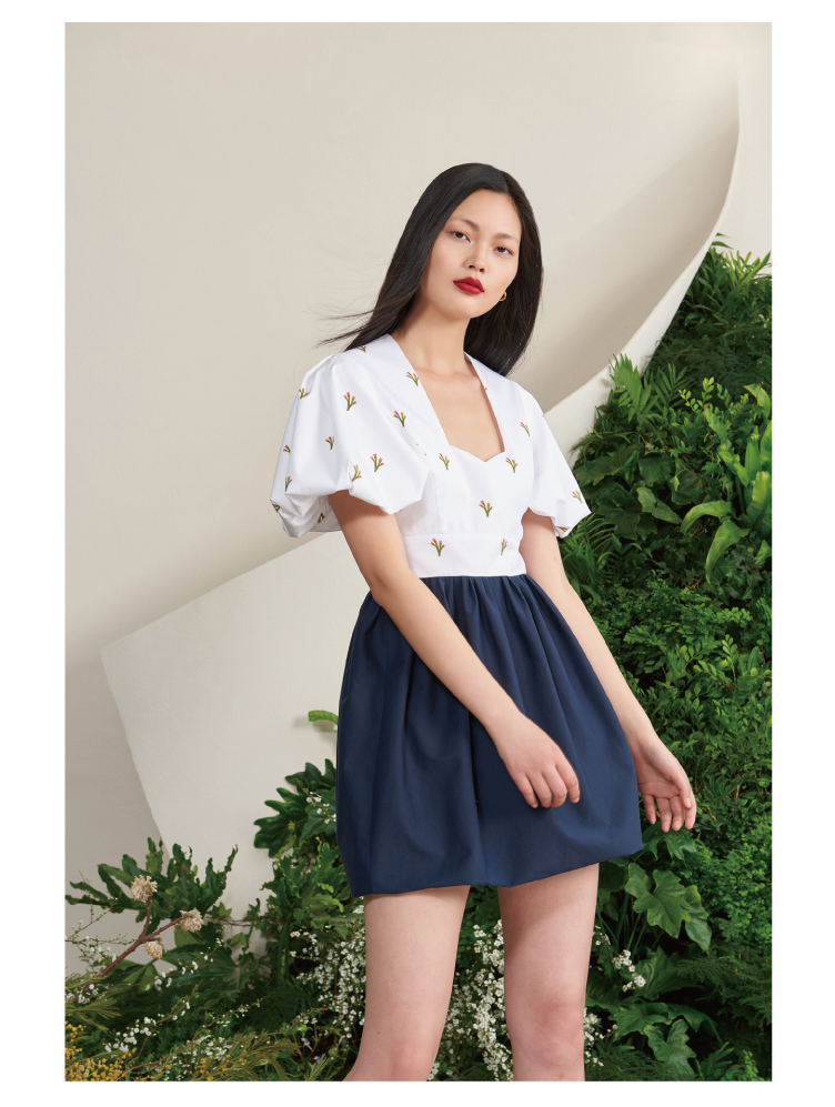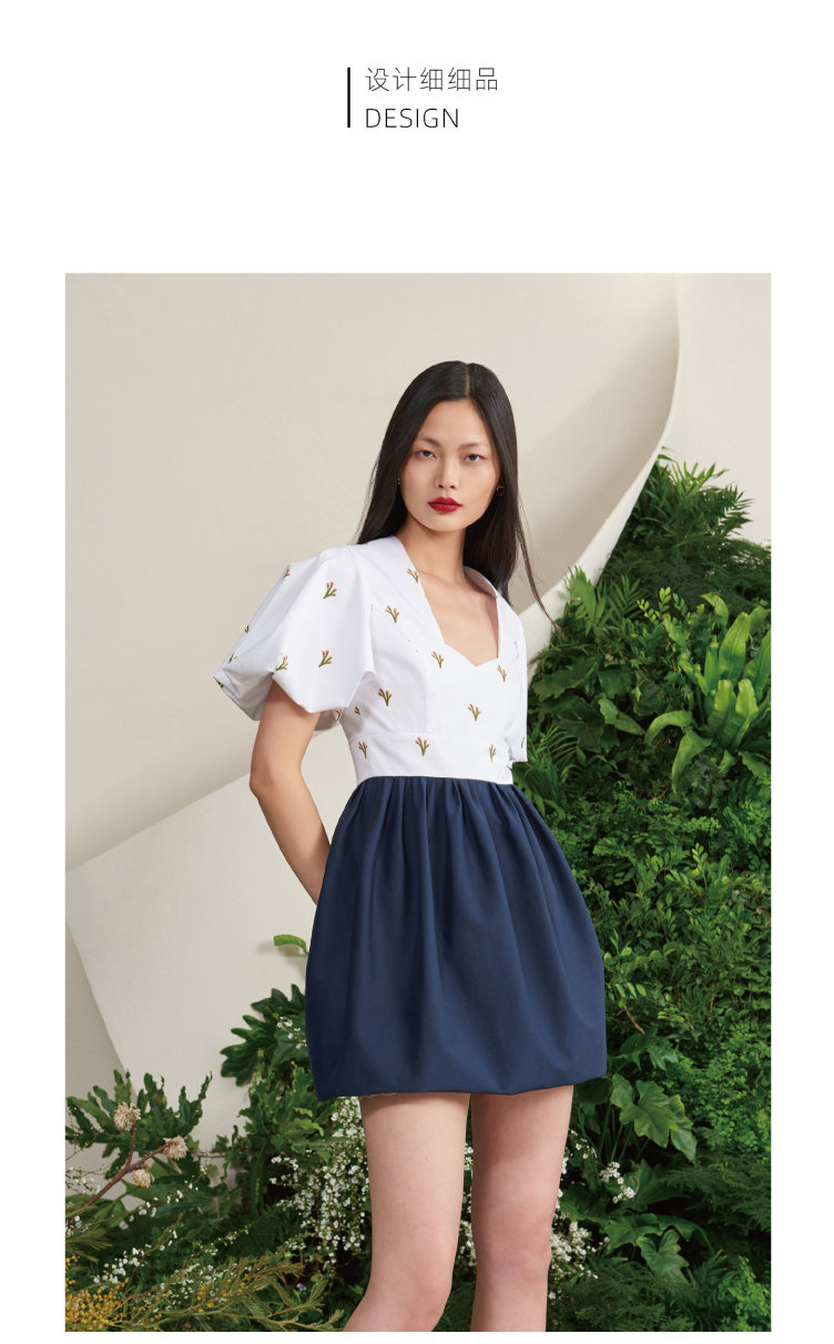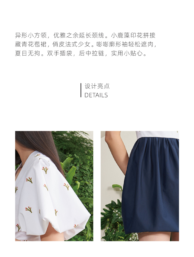 【海洋麋鹿】小鹿藻异形方领泡泡袖撞色花苞连衣裙/0000692