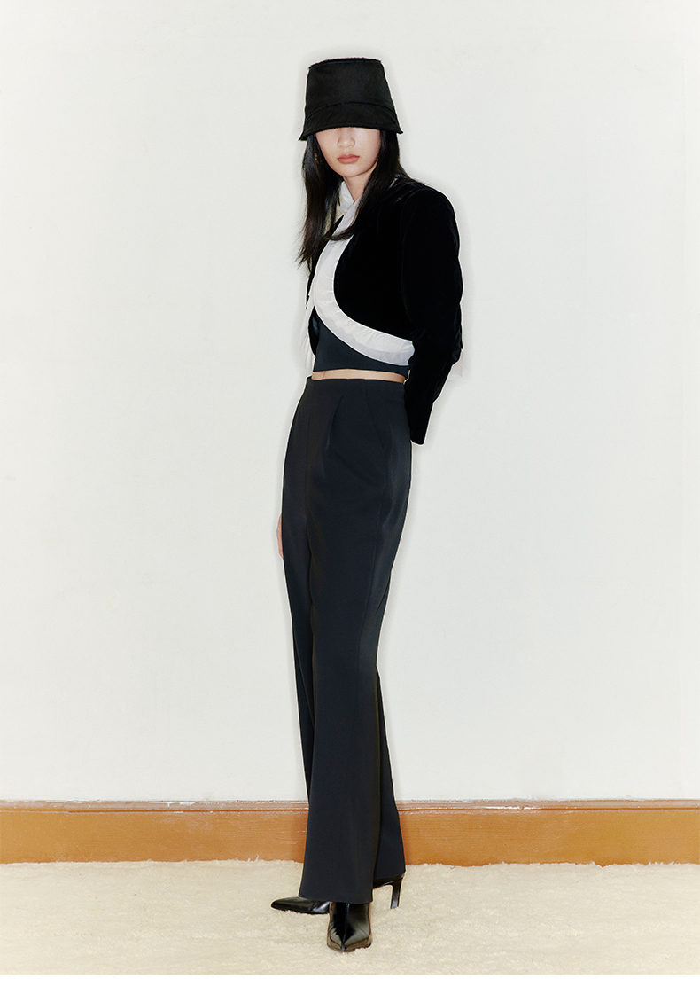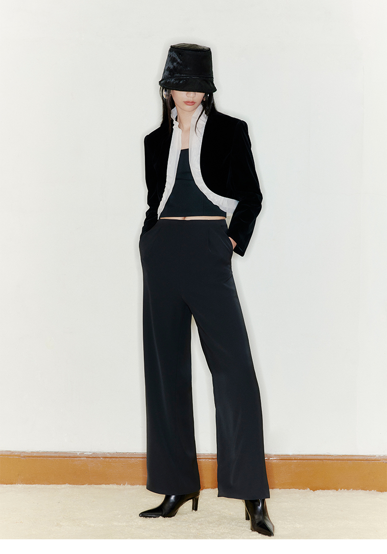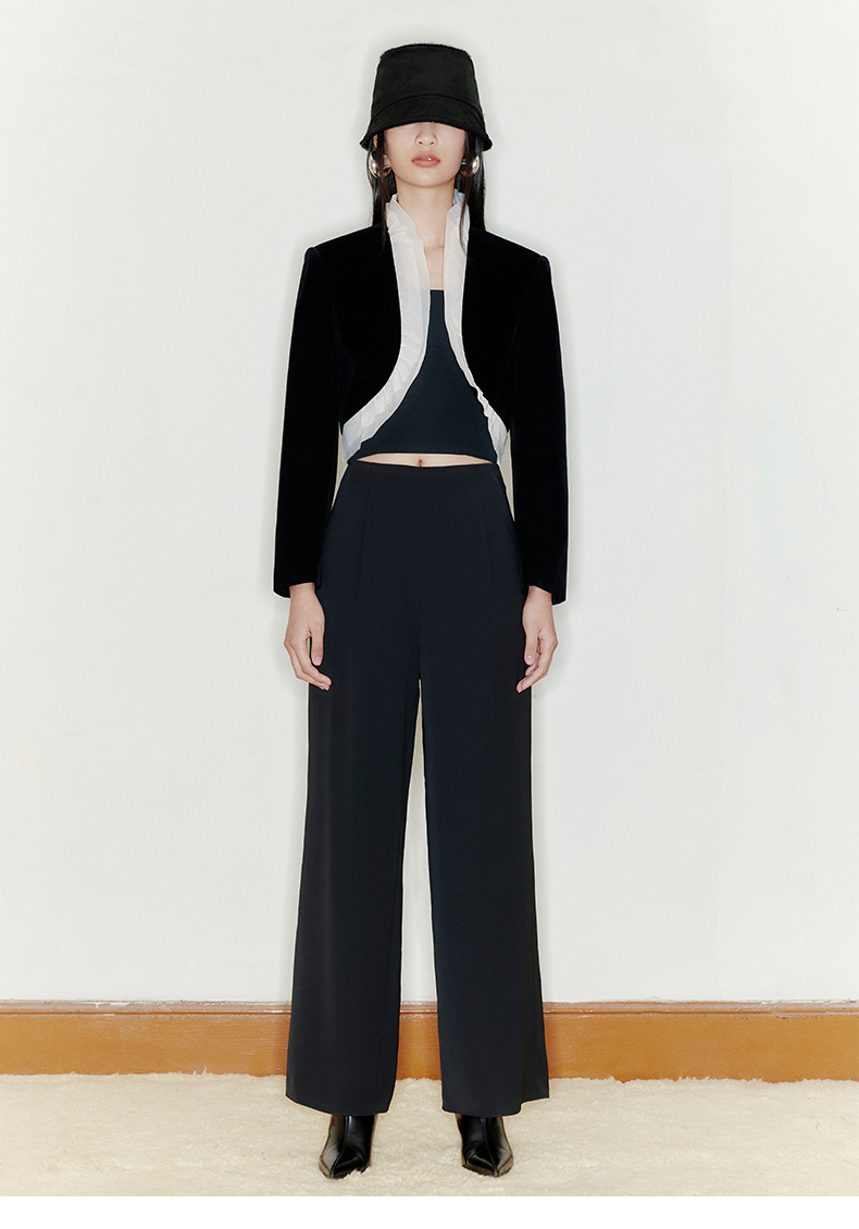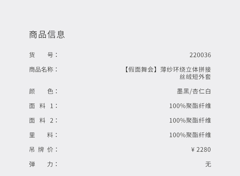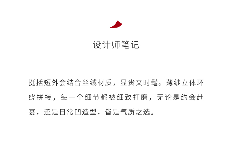 【假面舞会】薄纱环绕立体拼接丝绒短外套/220036