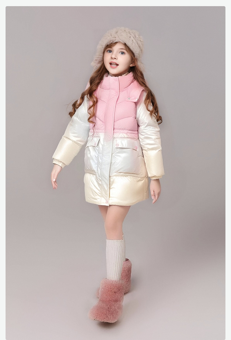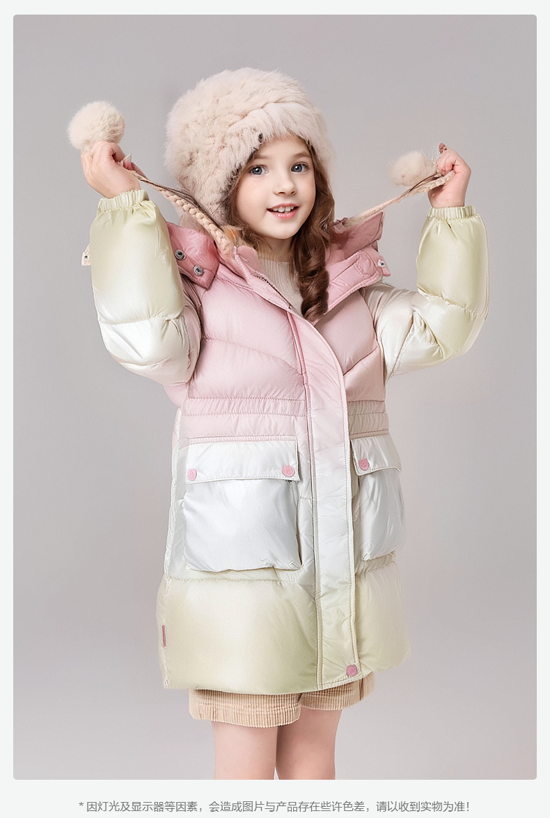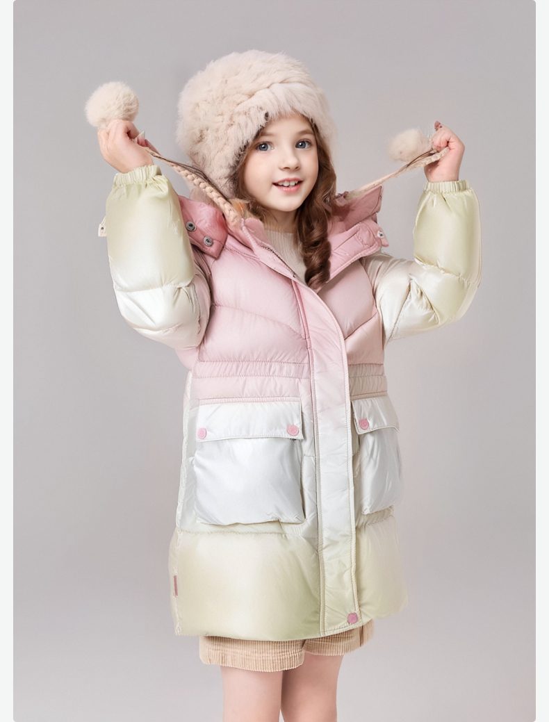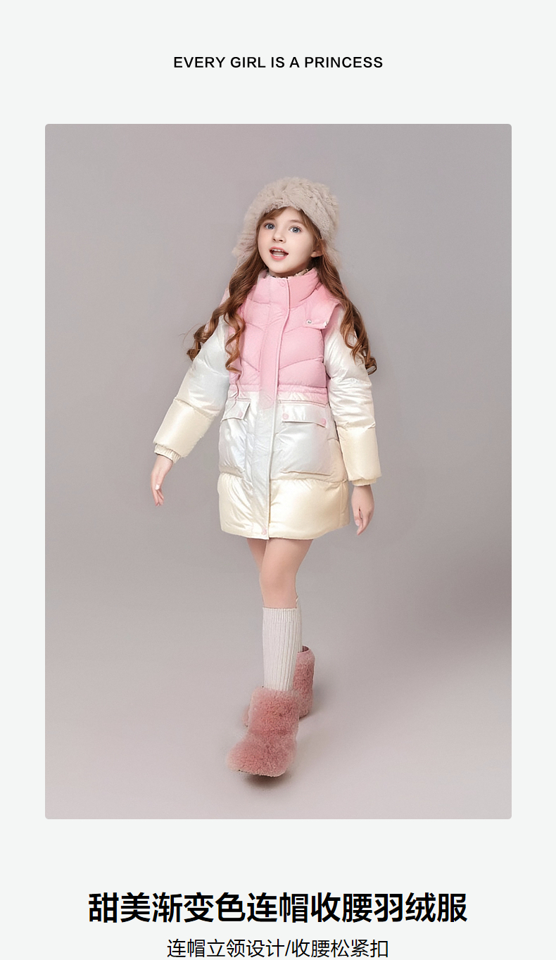 笛莎女童羽绒服2024冬季新款宝宝渐变色连帽收腰羽绒服