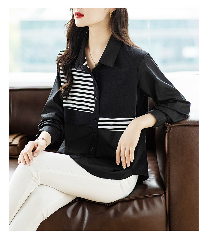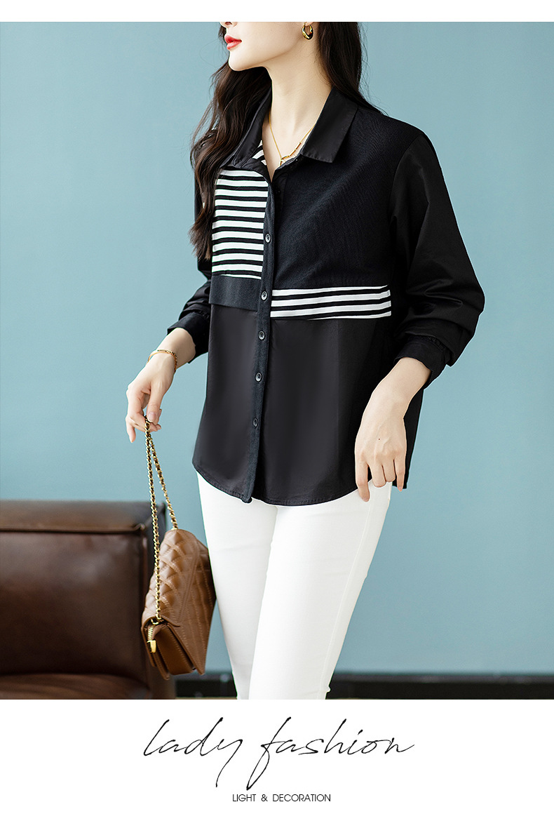 假两件条纹拼接衬衫,洋气宽松时尚上衣翻领衬衣CC-XFY2019