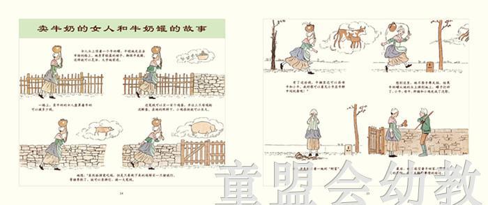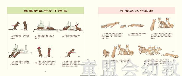 本书收录了多个滑稽的小故事,故事中的角色都是拟人化的小动物,轻松易懂,带领读者体会其中的人生哲理。书中大部分都是脍炙人口且富有深意的故事,如《龟兔赛跑》、《乌鸦和狐狸》、《狼和小羊》等。十九世纪儿童插画大师M.布特·德·蒙维尔根据情节的发展配有传神的插图,图画的色调淡雅温馨,情节捕捉得准确到位,让人抛开文字仅看画面也能体会到或张或弛的故事情节,把握故事的大致脉络。一幅幅简洁动人的画面,为故事点睛,尽显大师的水准。