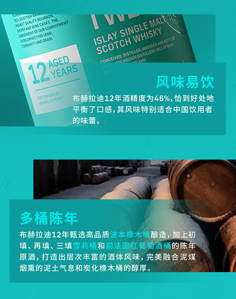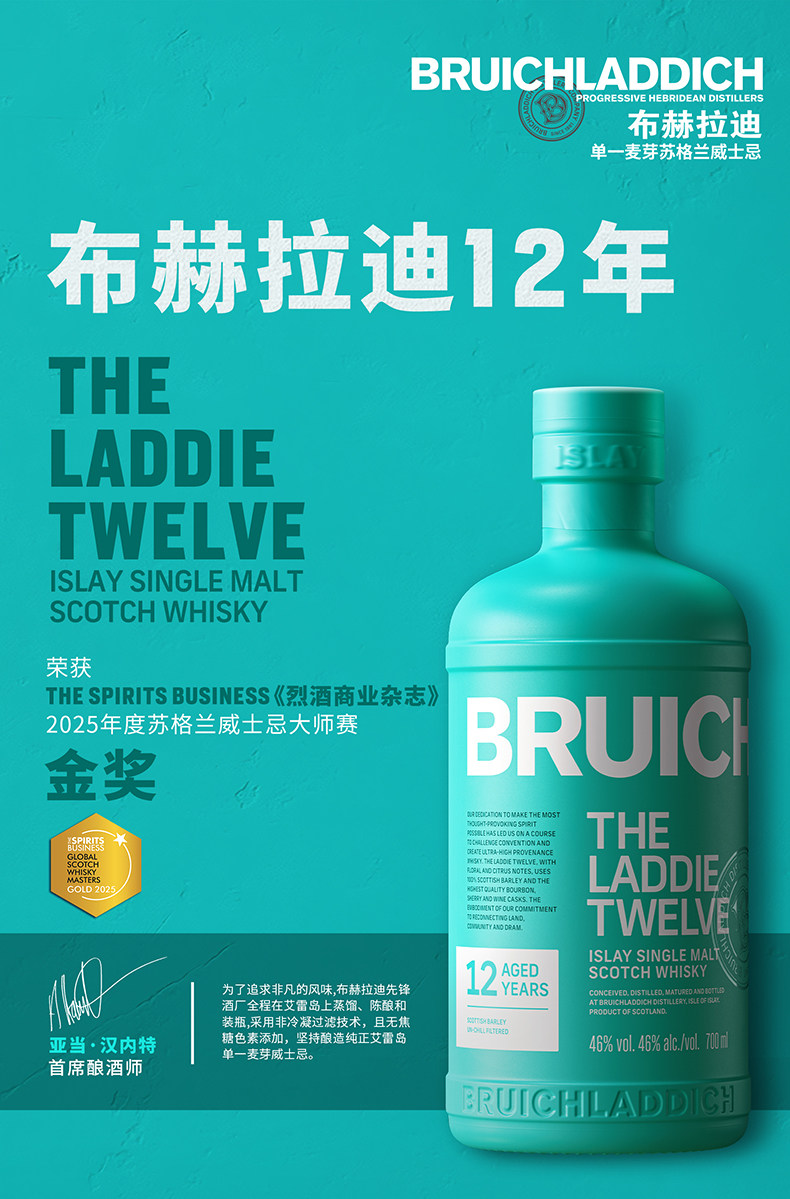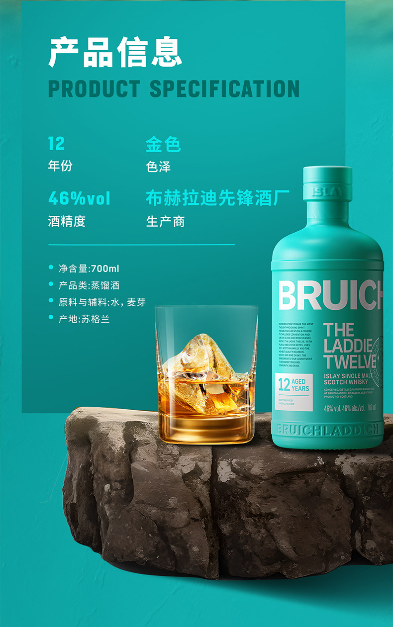 【马年礼盒】布赫拉迪(Bruichladdich)12年单一麦芽苏格兰威士忌