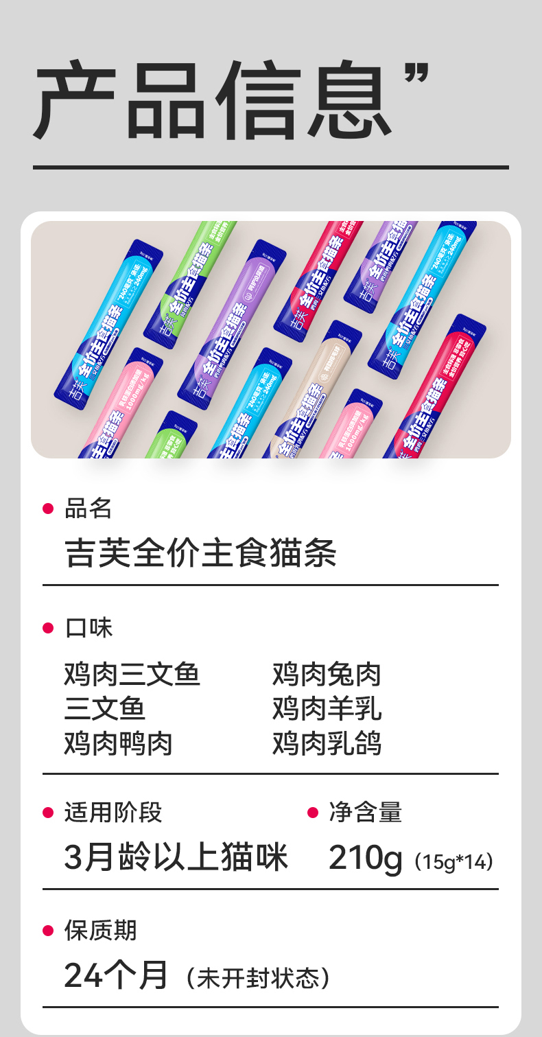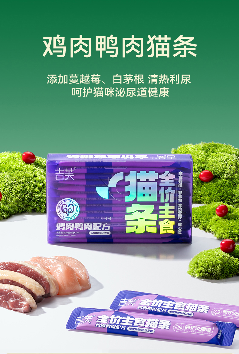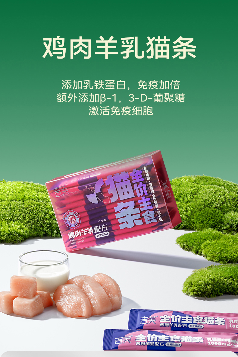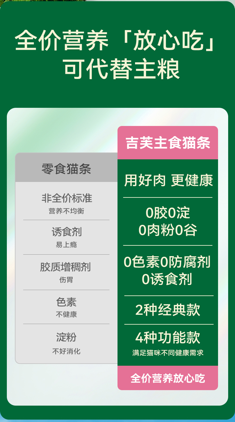 吉芙全价主食猫条鱼油美毛0胶0淀粉鸡肉兔肉成幼猫粮非零食猫湿粮