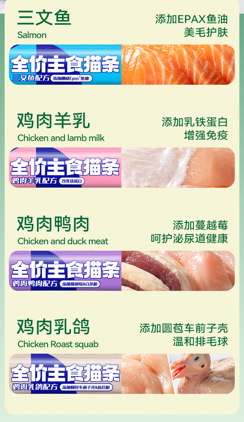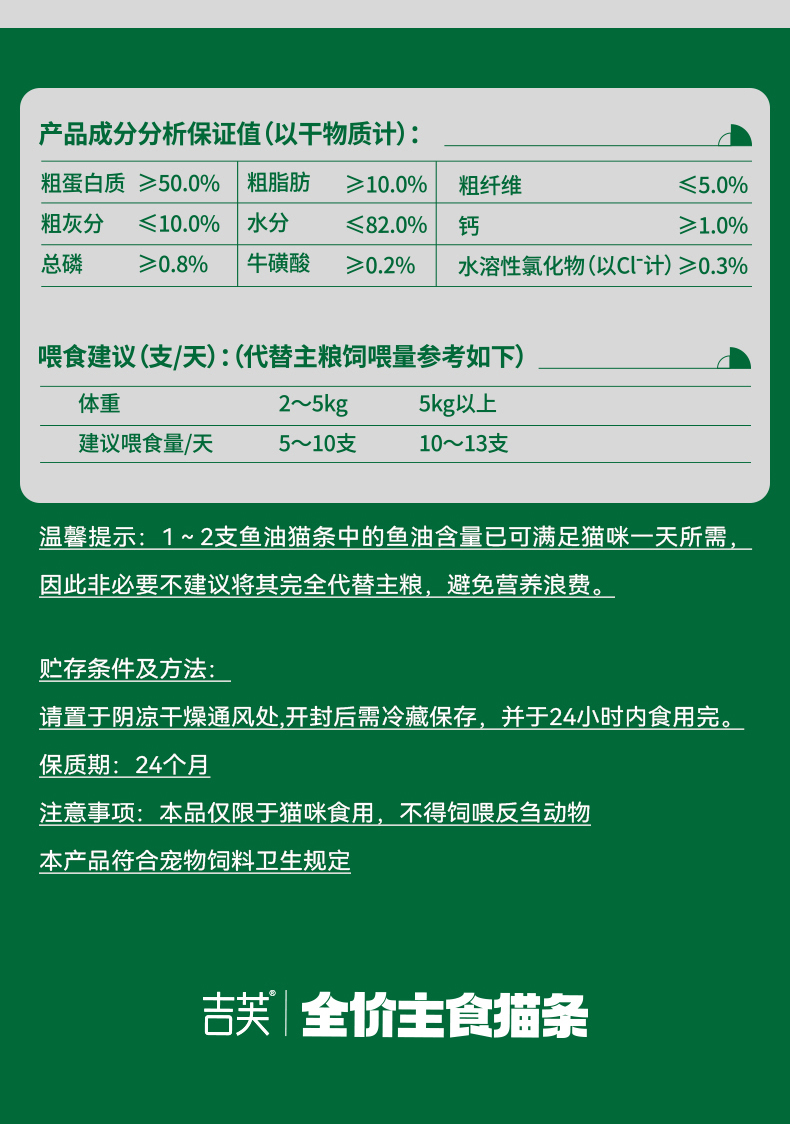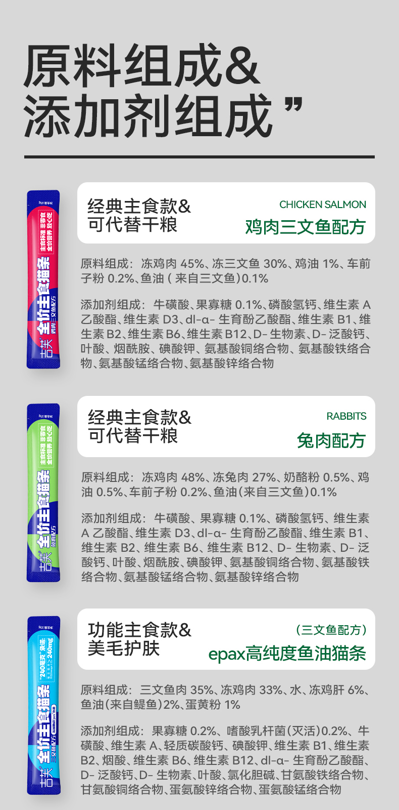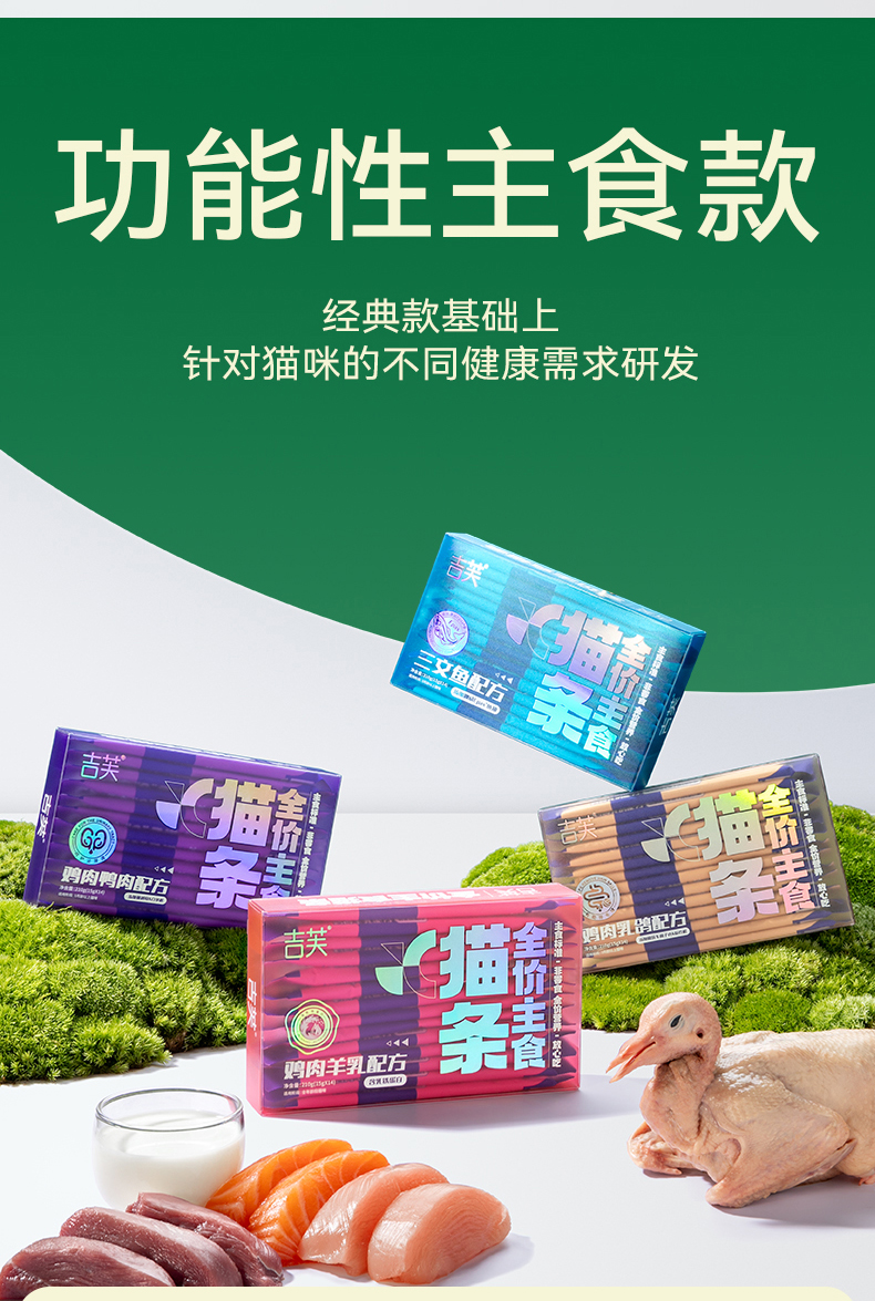 吉芙全价主食猫条鱼油美毛0胶0淀粉鸡肉兔肉成幼猫粮非零食猫湿粮