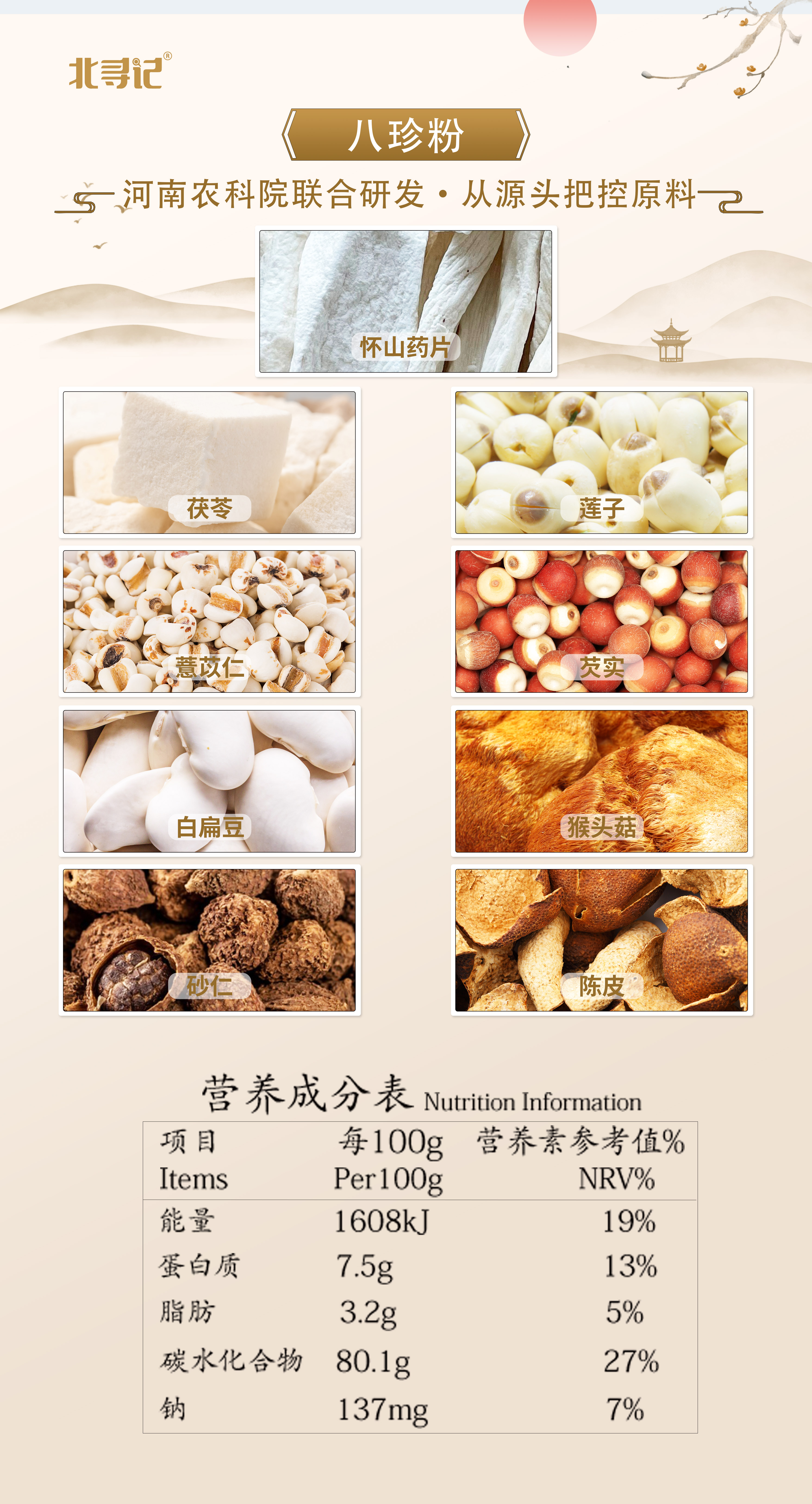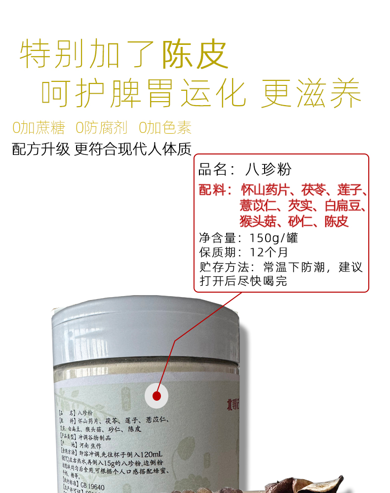 河南农科院出品 八珍粉 脾胃全面养 配料超干净150克/罐