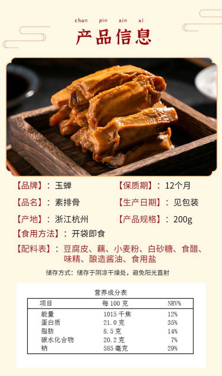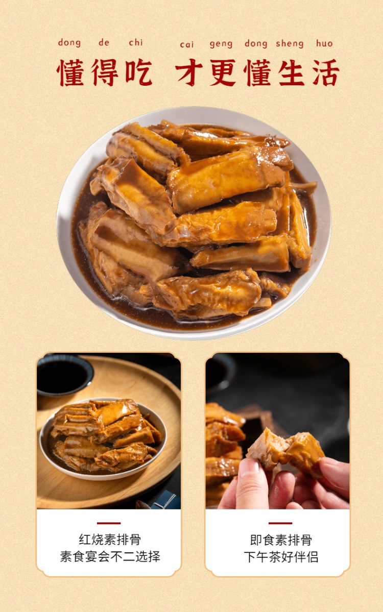 杭州特色小吃纯素排骨豆制品卤味素肠零食素牛肉斋菜开袋即食200g