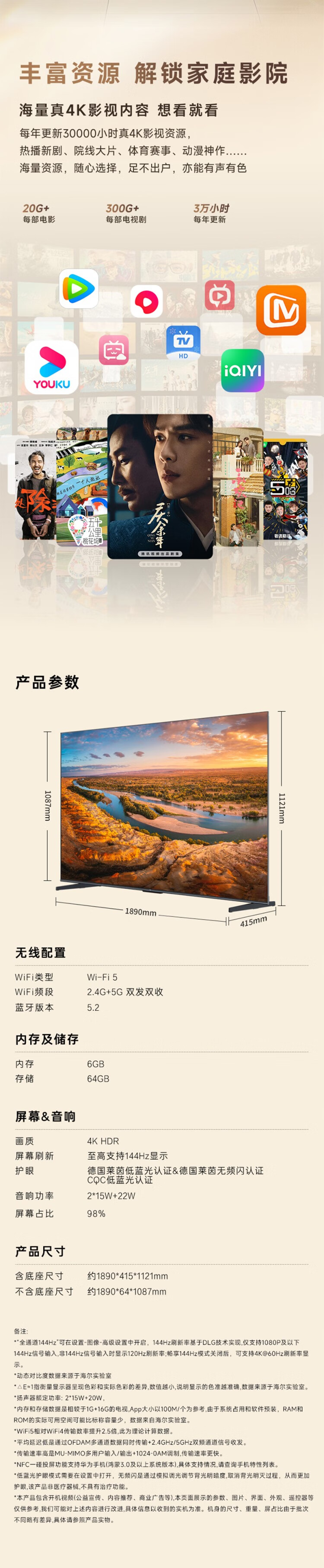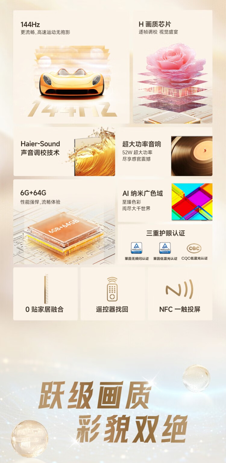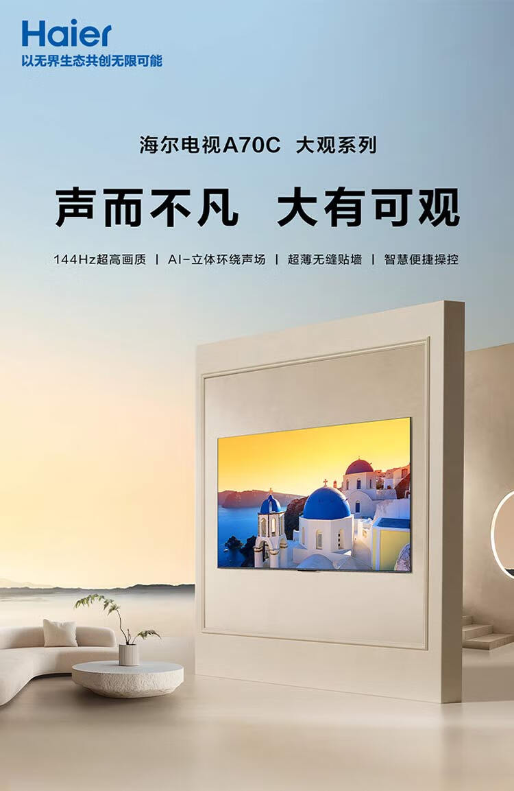 【新品】海尔平板电视85A70C二级能效6+64G高刷