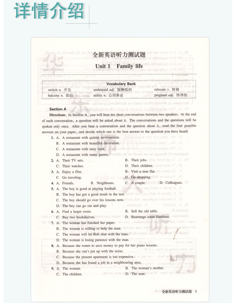 1-9年级全新英语阅读全新英语听力基础版提高版英语词汇英语听力词汇练习册