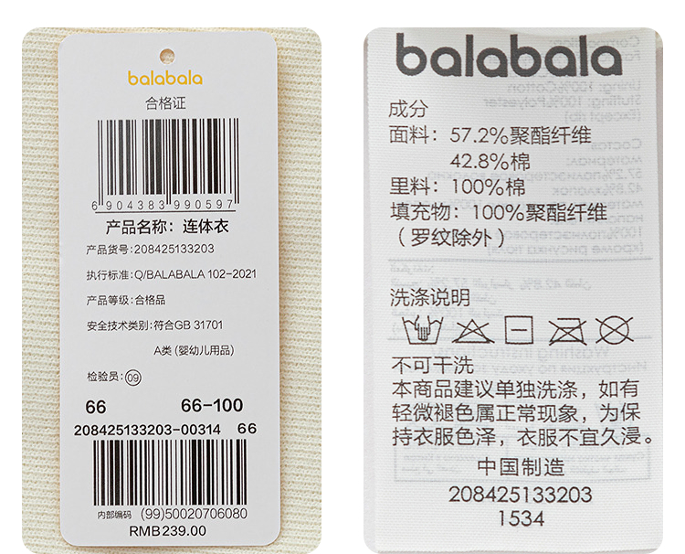 巴拉巴拉balaOne新生儿连体衣2025新款冬季宝宝哈衣爬服夹棉时尚