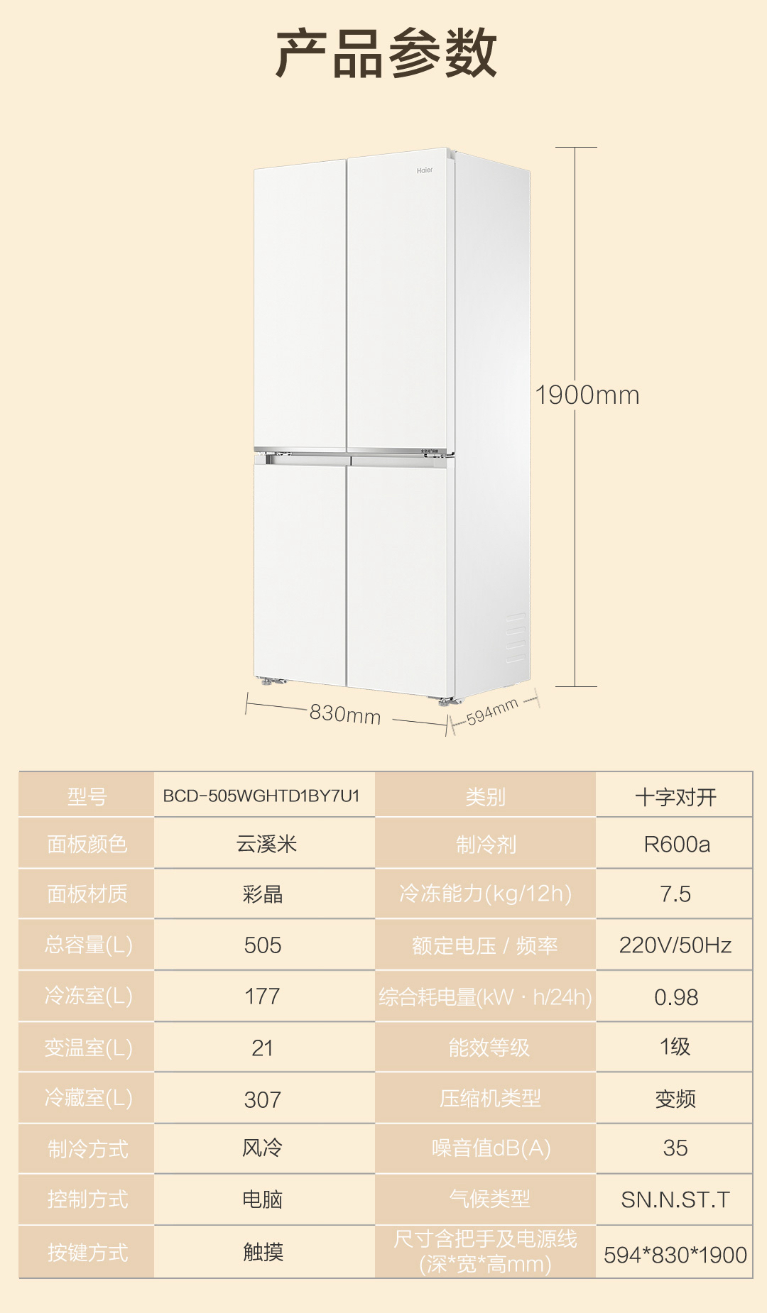 海尔(Haier)冰箱 BCD-505WGHTD1BY7U1