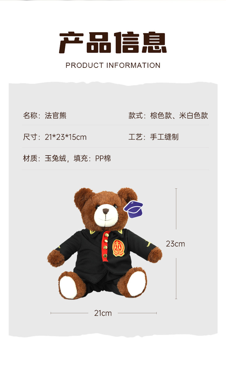 【法官熊】儿童毛绒公仔玩具 精致小熊玩偶布娃娃摆件