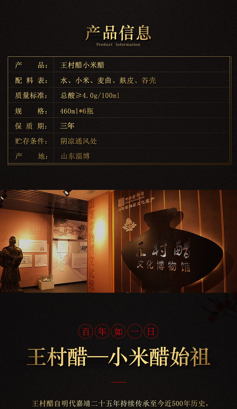 王村小米醋 王村醋 家用凉拌无糖纯粮食酿造460ml
