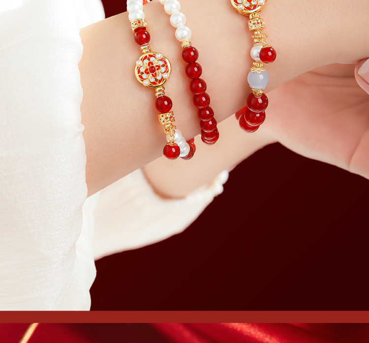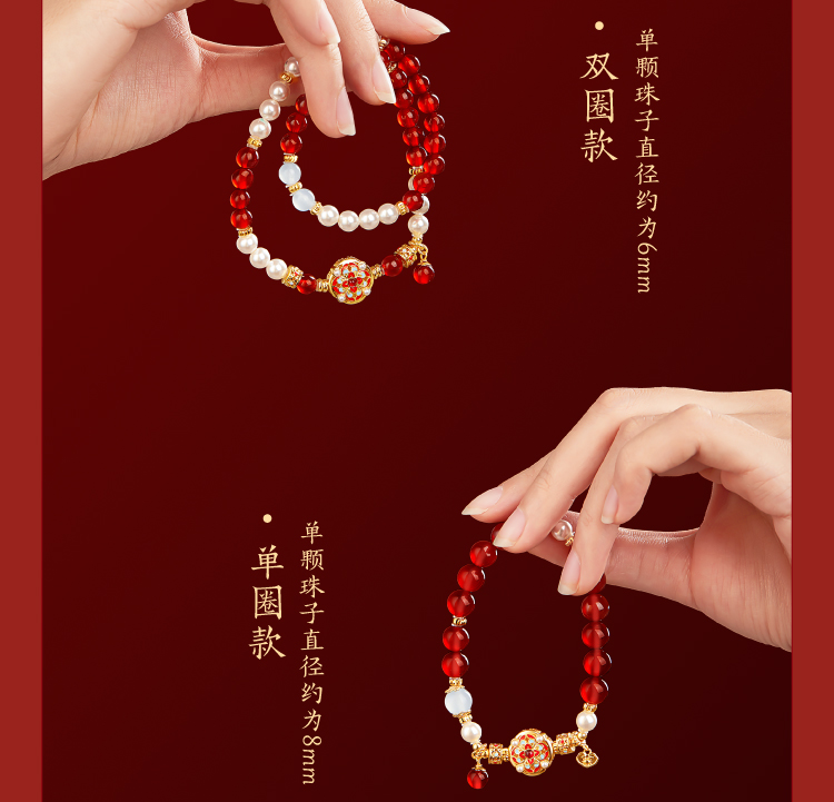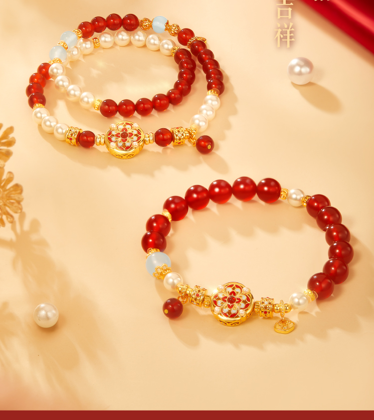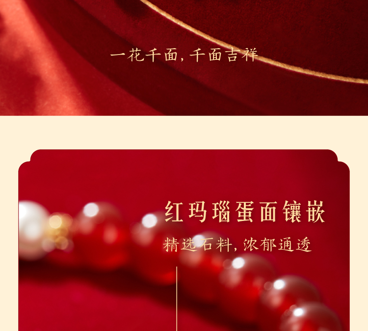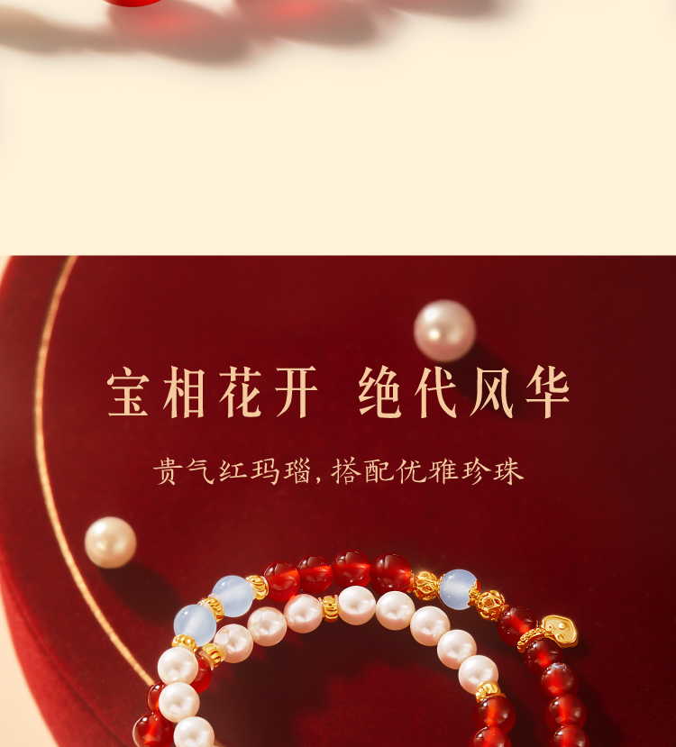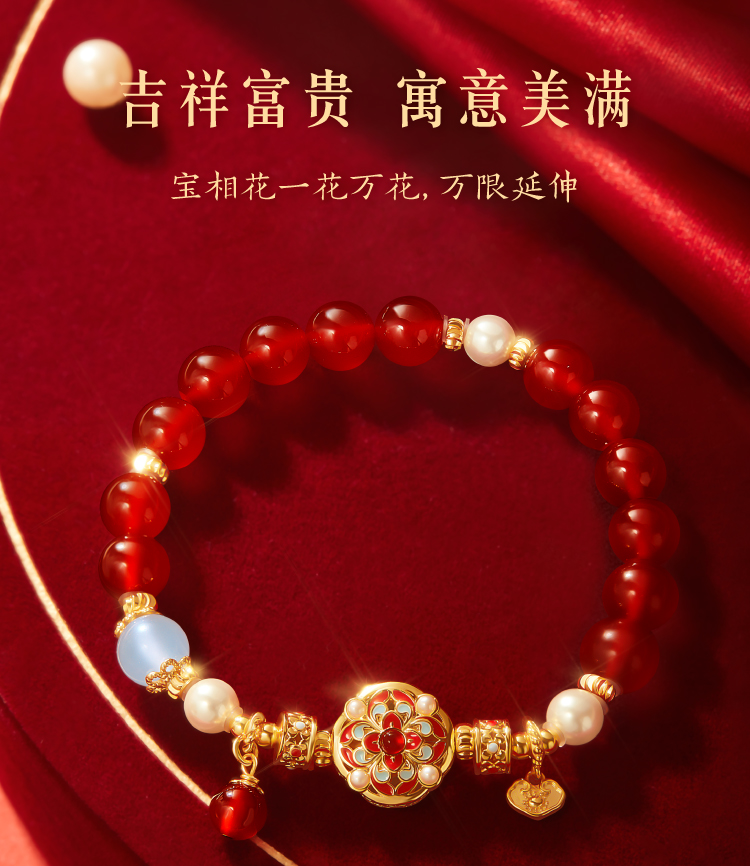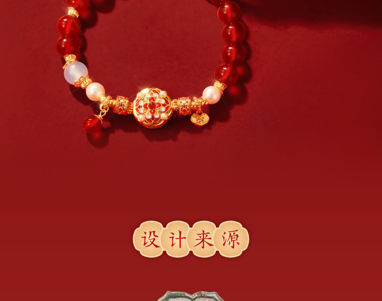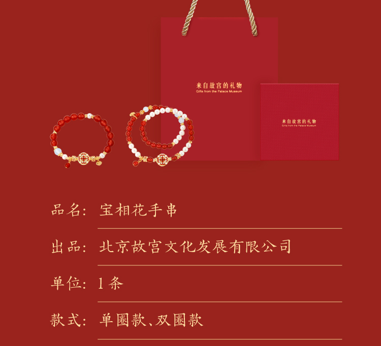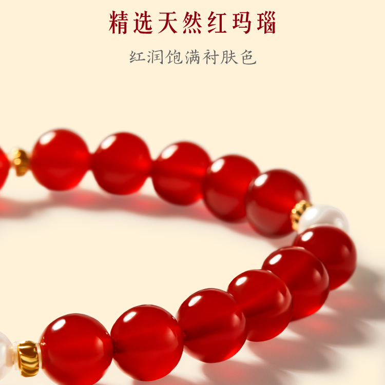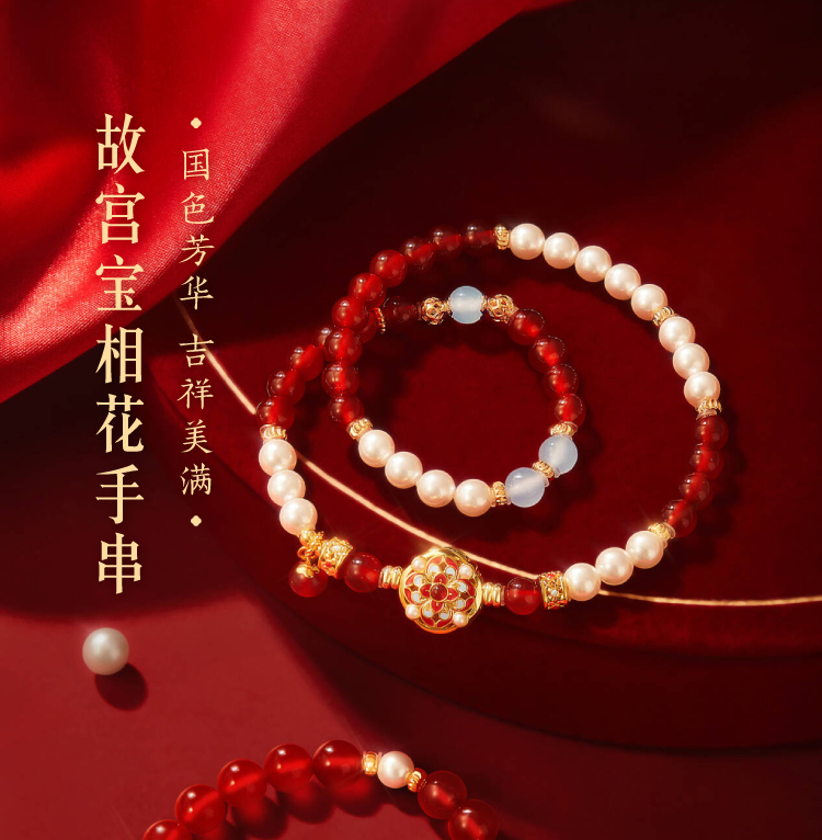 【故宫饰品】宝相花红玛瑙手串仿珍珠蛇年本命年手链新年礼物