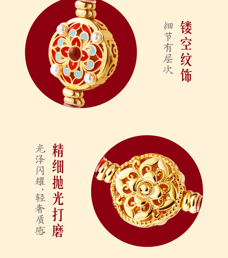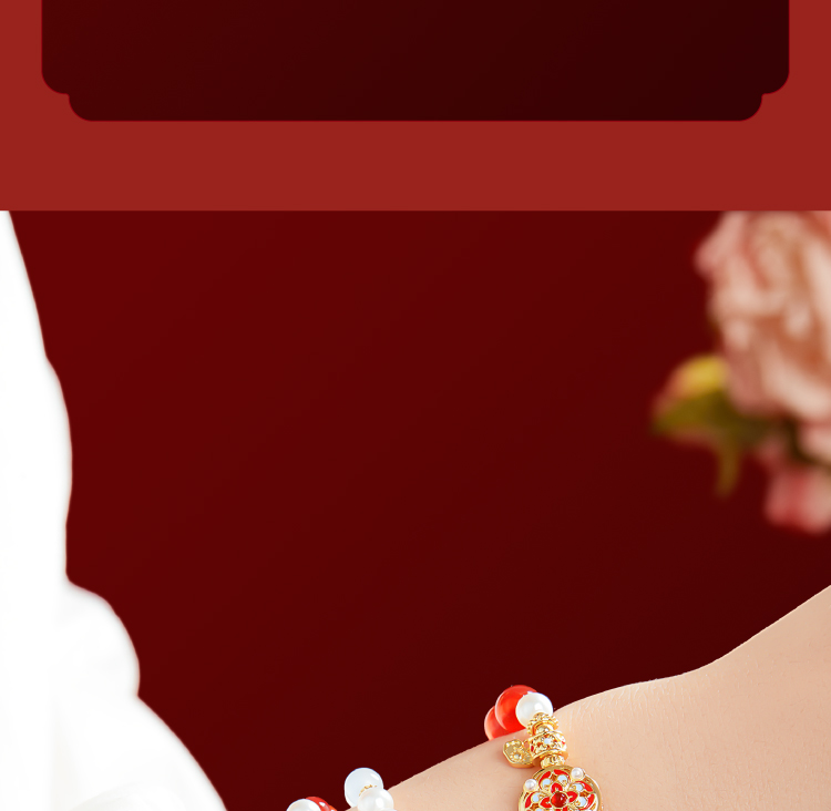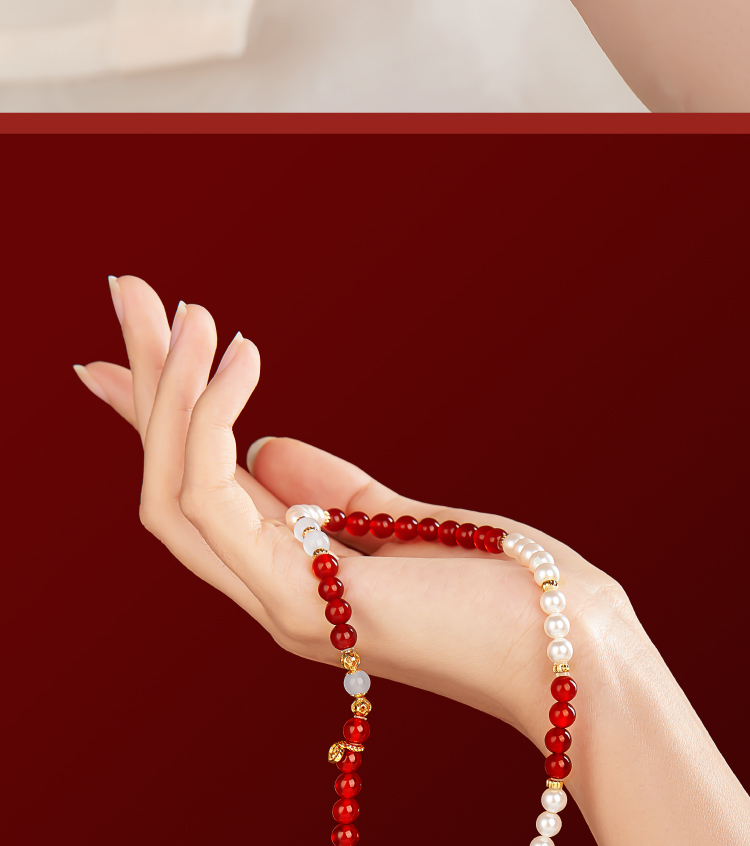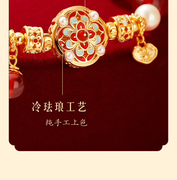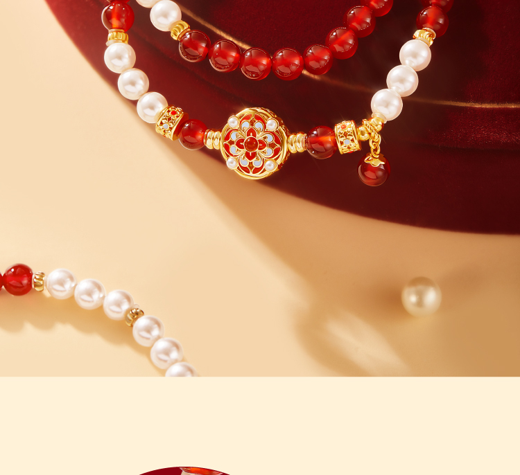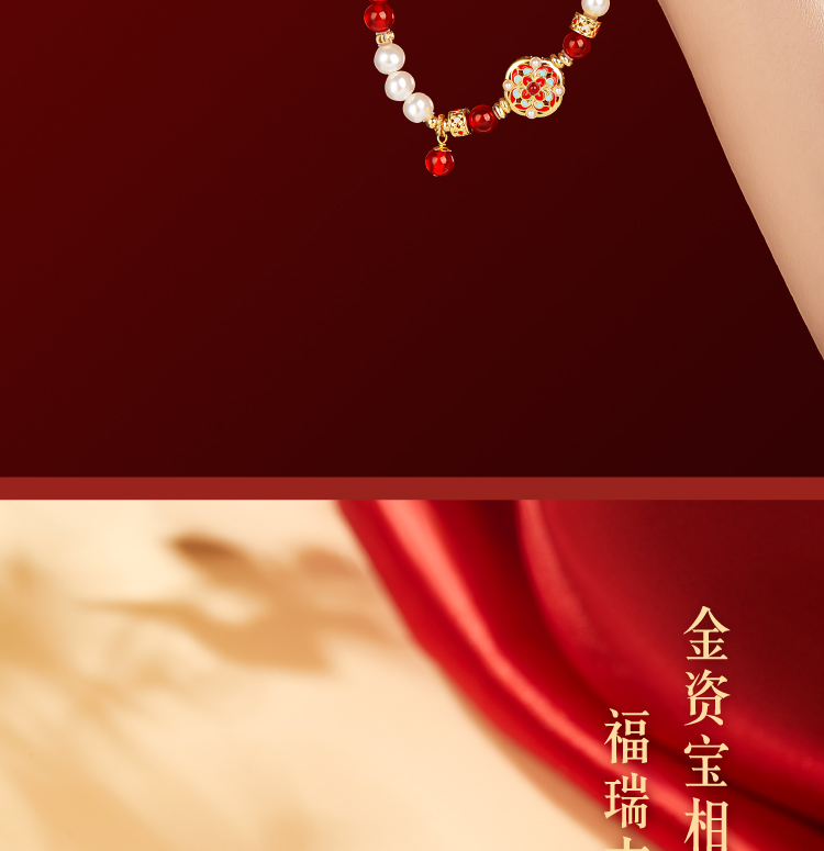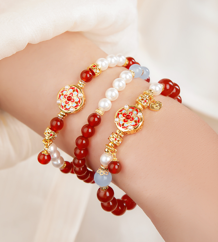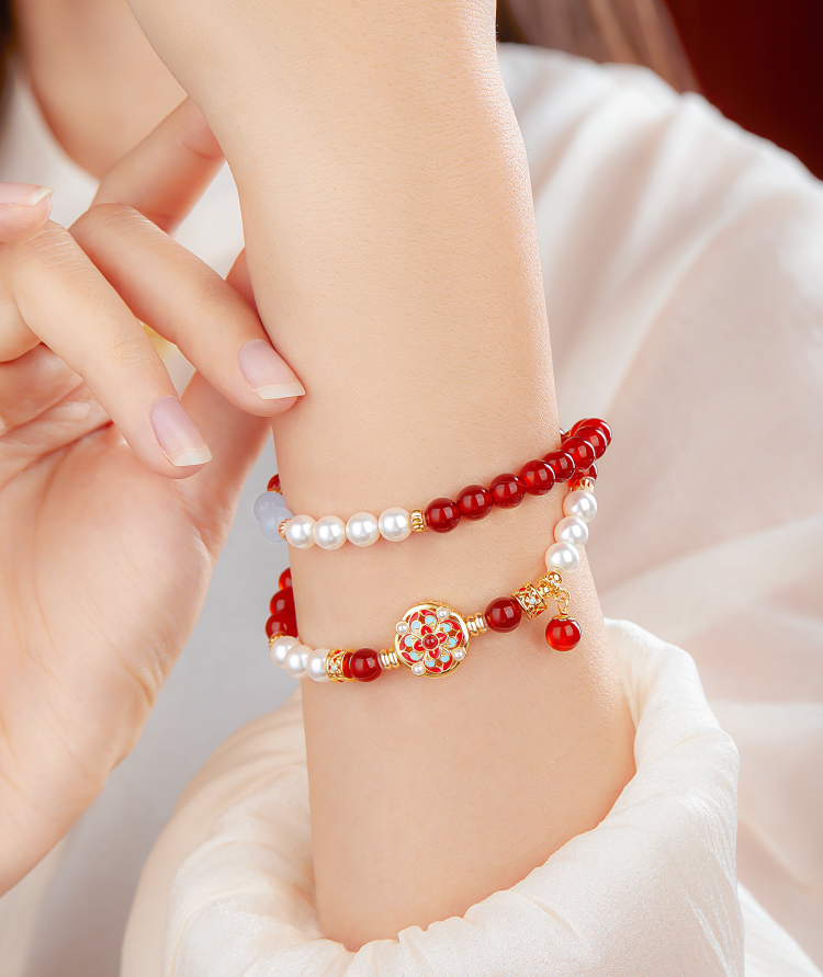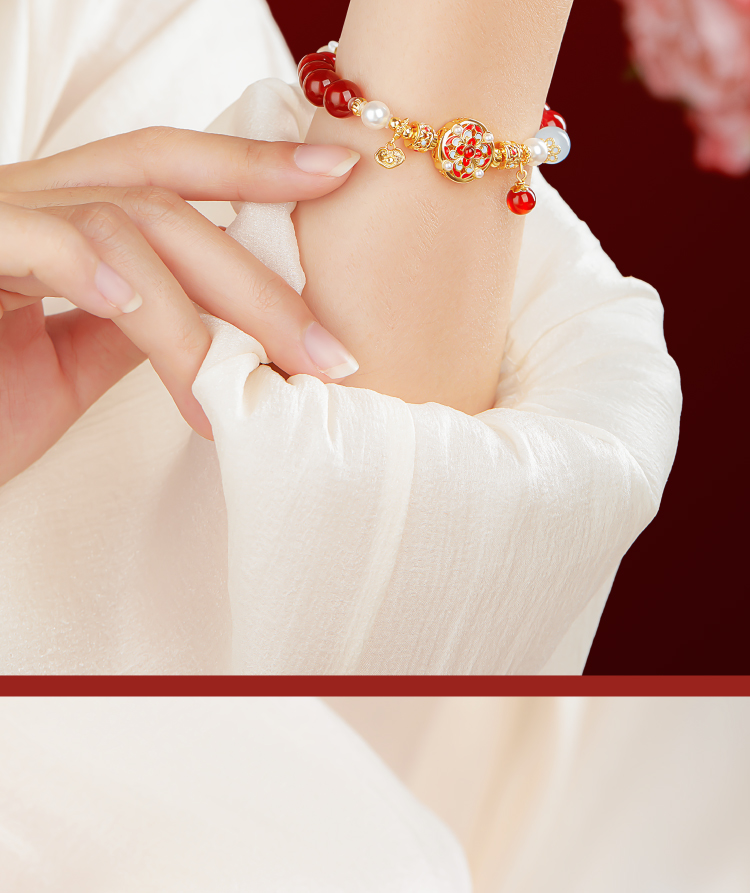 【故宫饰品】宝相花红玛瑙手串仿珍珠蛇年本命年手链新年礼物