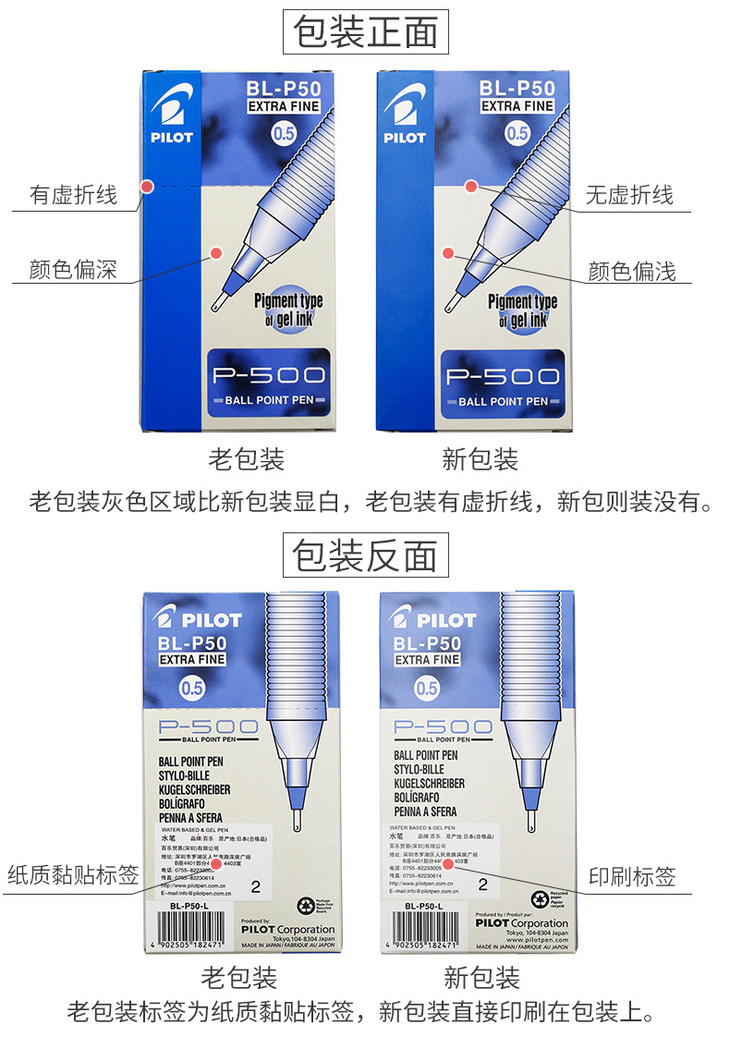 百乐P500考试刷题0.5mm考试用啫喱墨走珠笔(12支装)
