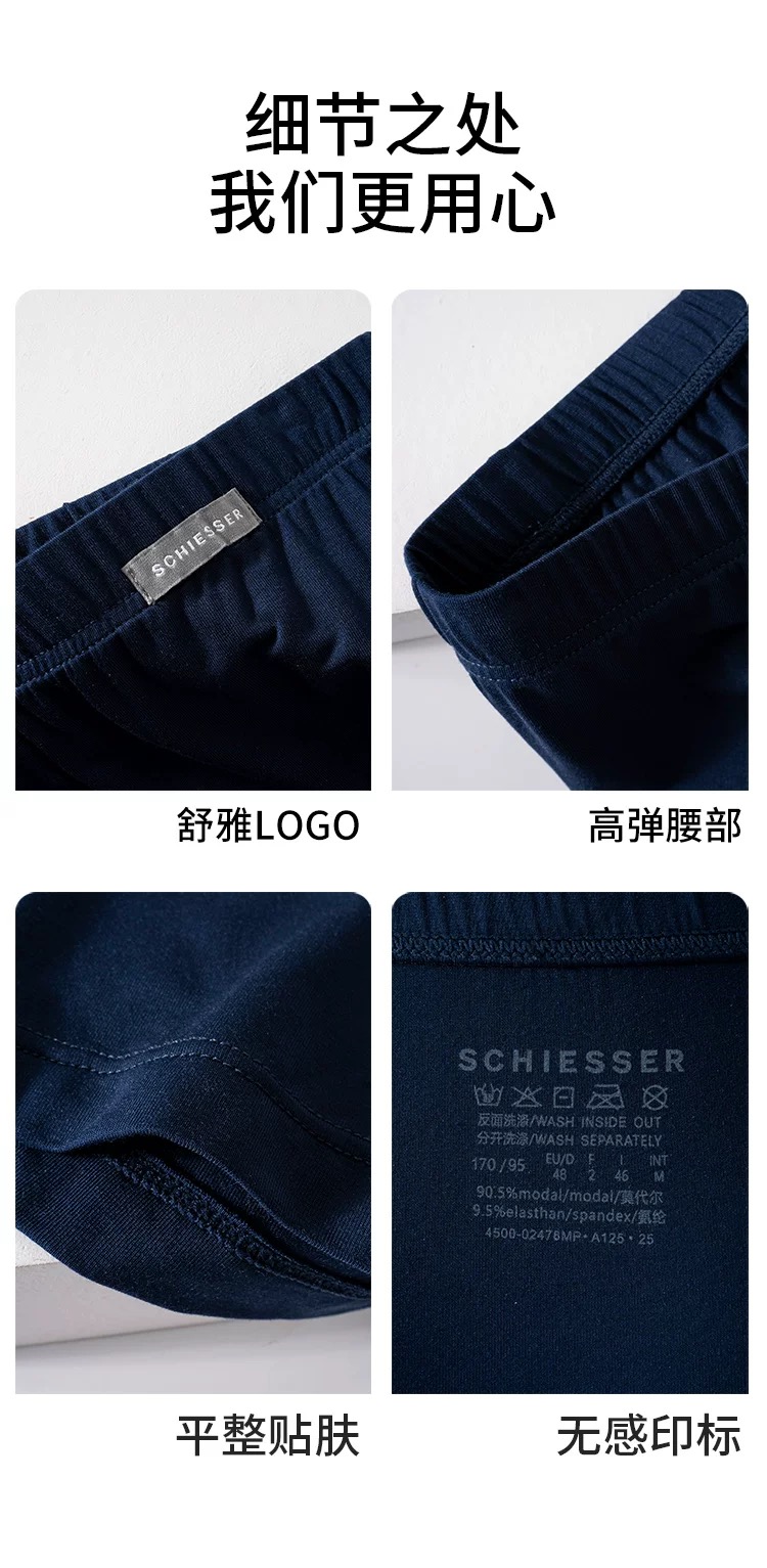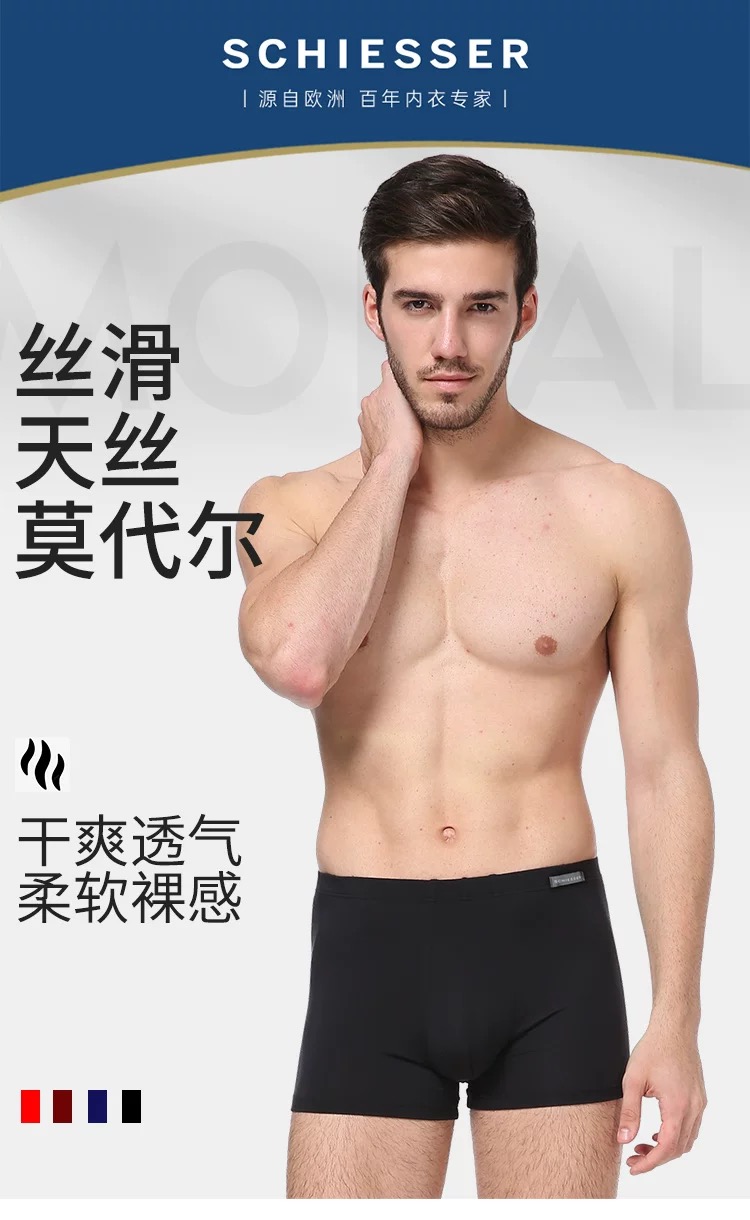 【天丝莫代尔】SCHIESSER德国舒雅男士薄款柔软亲肤天丝莫代尔中腰平角小裤单条装35/24174T