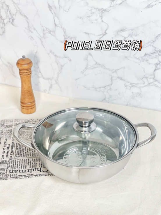 【PONEL团圆鸳鸯火锅】 🔸精选304不锈钢材质,安全放心 🔸双味鸳鸯锅,清鲜劲辣,同锅不串味,解决众口难调问题 🔸精密激光点焊工艺,底部不串味不渗汤 🔸加热快,适合各种炉具 🔸锅身大容量设计,满足大聚会需求
